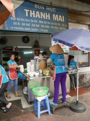 ร้านอยู่หัวมุมถนนพอดี(เปิดเฉพาะช่วงกลางวันกลางคืนปิด) บุ๋นของเค้า บ้านเราคือก๋วยจั๊บญวณนี่แหละ แต่เส้นไม่เหมือนกันที่นี่ออกเป็นขนมจีนเลย ไม่เป็นใสๆหนึบๆน้ำก็ใสบ้านเราน้ำจะขุ่นๆแป้งๆ นี่น้ำใสแบบก๋วยเตี๋ยว ท๊อปปิ้งสารพัดหมูยอ ลูกชิ้นหมู+กุ้ง แถมกระดูกหมูอีก1ชิ้น กินกับผักสดเป็นหัวปลีฝอย ถั่วงอกผักบุ้งฝอย พวงเครื่องปรุงมีเกลือ น้ำปลา พริกหั่น พริกไทยดำทุบ ขนาดมีชามใหญ่-ชามเล็ก(เราสั่งชามเล็กราคาประมาณ75บาทไทย) สั่งเสร็จหน้าร้าน(ใช้จิ้มๆเอา) เจ้ก็พาไปนั่งโต๊ะแชร์ (ที่เรียกโต๊ะแชร์ เพราะทั้งร้านมี 3โต๊ะ) ไปนั่งแชร์กับอาเฮียญี่ปุ่นคนนึง