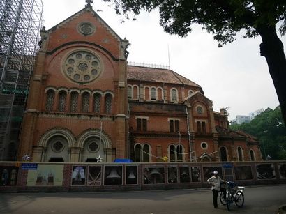 แลกเงินเสร็จก็เดินจากตลาดไปโบสถ์นอร์เธอดาม ประมาณโลกว่าๆ จนเพื่อนถามว่านี่ทริปกินรึทริปเดิน แต่ตลอด2ข้างทางก็มีอะไรให้มองตลอด....มอ'ไซไงคะ สวนเลนกันซ้ายขวา มอซ้าย-มองขวาแล้วก็ต้องมองซ้ายอีกที วิธีการเดินคือเดินๆๆไปค่ะอย่าหยุด พี่เค้าจะหลบเราเอง ส่วนไฟเขียว-ไฟแดงนั้น ไม่มีผลใดๆอย่าไว้ใจ