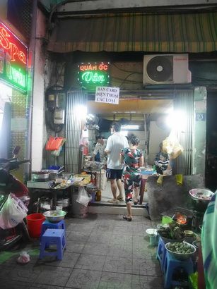 เดินตรงเข้าซอยมา มองขวามือหน้าร้านแคบๆ สังเกตุป้ายไฟไว้ให้ดี คำว่า Oc อ่านว่า อ๊อค แปลว่า หอย จ้า (เลื่อนขึ้นไปดูในแผนที่รูปแรกได้ ชื่อร้าน Quan Oc Van)