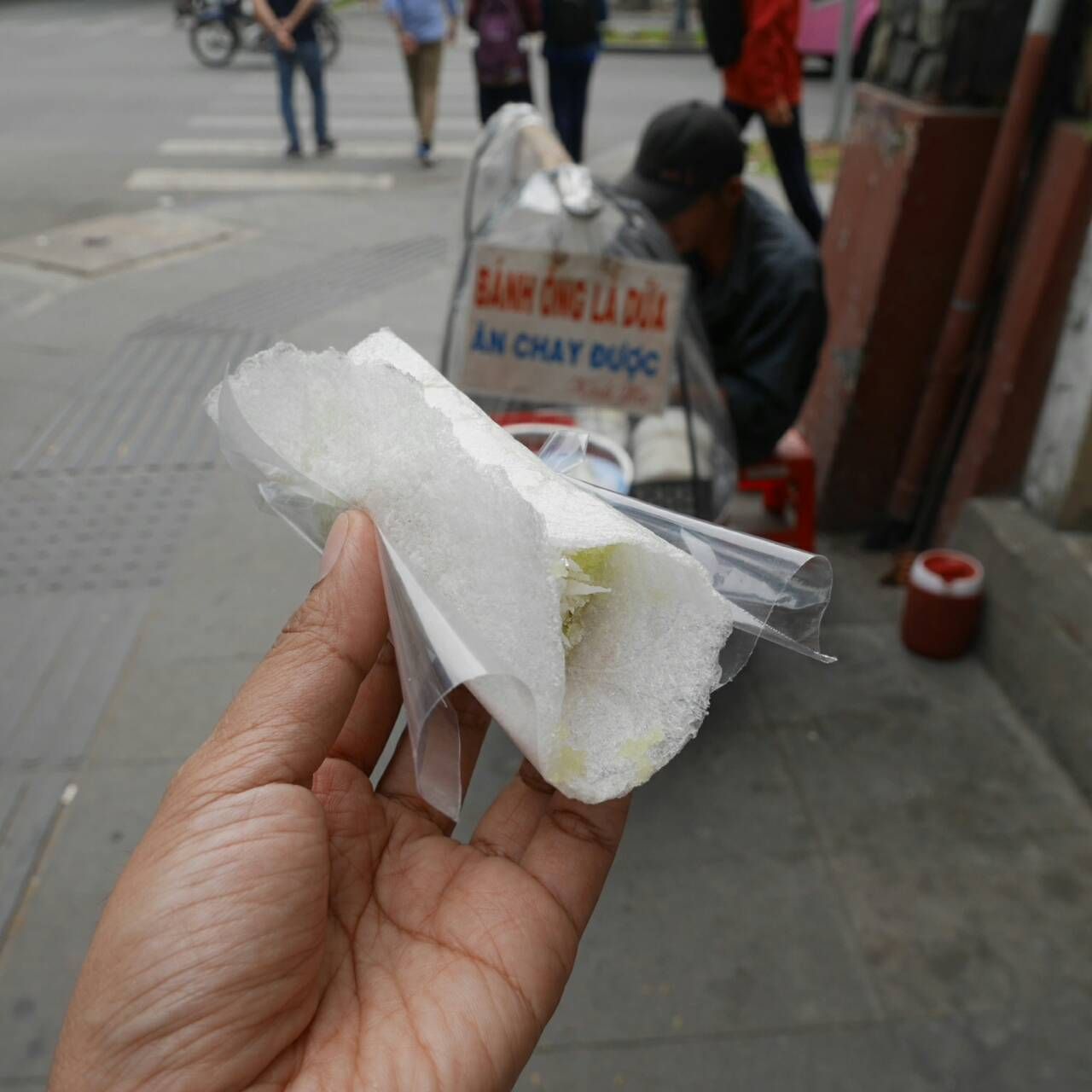 ข้างทางก็มีของให้ลองชิมไปเรื่อย ถอยมา1อันราคา 7,000ด่อง (10บาท) ตอนถามราคาพี่คนขายควักแบ๊งค์มาโชว์ให้ดู ฟีลประมาณขนมเบื้องแบบนิ่ม