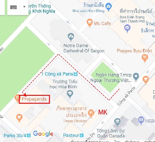 เช็คพ้อยเสร็จก็จะไปคาเฟ่แรกกัน Propagandaสุตฮิตของสายฝ. ถ้าหันหน้าเข้าพระแม่มารีคือเดินมาทางซ้ายค่ะแล้วเดินขึ้นไปทางโบสถ์ ถ้าเดินผิดทางจะเจอMK ฟังไม่ผิดหรอก MKสุกี้บ้านเรานี่แหละ มาเปิดสาขาที่นี่ เดินขึ้นไปเลี้ยวซ้าย จะมีสวนสาธารณะอยู่ขวามือ ร้านPropagandaจะอยู่ทางซ้าย