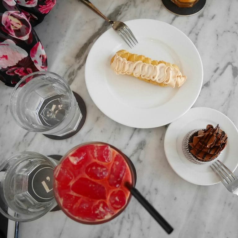 Grabเช่นเดิมจ้า จากที่เมื่อเช้าไปวิ่งสำรวจมา ร้าน L'Usine สาขาตรงopera house (อยู่ชั้น2 ของตึกที่มีขายพวกรูปวาดด้านล่างนะ) ร้านแบ่งเป็น2โซนไปอีก คือ โซนคาเฟ่ กับโซนร้านอาหาร ที่มีของที่ระลึกขายด้วย มาแต่เช้ายังคงอิ่มจากข้าวเช้าอยู่เลย งั้นมากินเค้กที่นี่กัน พนักงานแนะนำทาร์ทมะนาวนะ แต่อยากลองคัพเค้กมากกว่าเลยสั่งชอคโกแลตคัพเค้ก(70,000ด่อง) กับแอเคลร์มะนาว(70,000เท่ากัน) ชอคโกแลตที่นี่เจ้มจ้นอยู่ ถือว่าใช้ได้ ราคาก็ถือว่าแรงกว่าที่อื่น น่าจะเพราะเป็นร้านดังด้วย เครื่องดื่มเป็นน้ำสกัดเย็นที่ผสมหลายๆอย่างชื่อว่าRoot radiance(85,000ด่อง) ขอบอกว่ามาเวียดนาม น้ำสกัด/น้ำปั่นที่เป็นผัก+ผลไม้ ของทุกร้านดีจริง คือไม่มีการใส่น้ำเชื่อม+น้ำแข็งเยอะๆเลย คือน้ำแข็งพอมีแค่ลอยหน้าเท่านั้น ได้รสของผัก+ผลไม้จริงๆและส่วนผสมก็คือลงตัวมากๆ สดชื่นๆ อยากให้ลอง