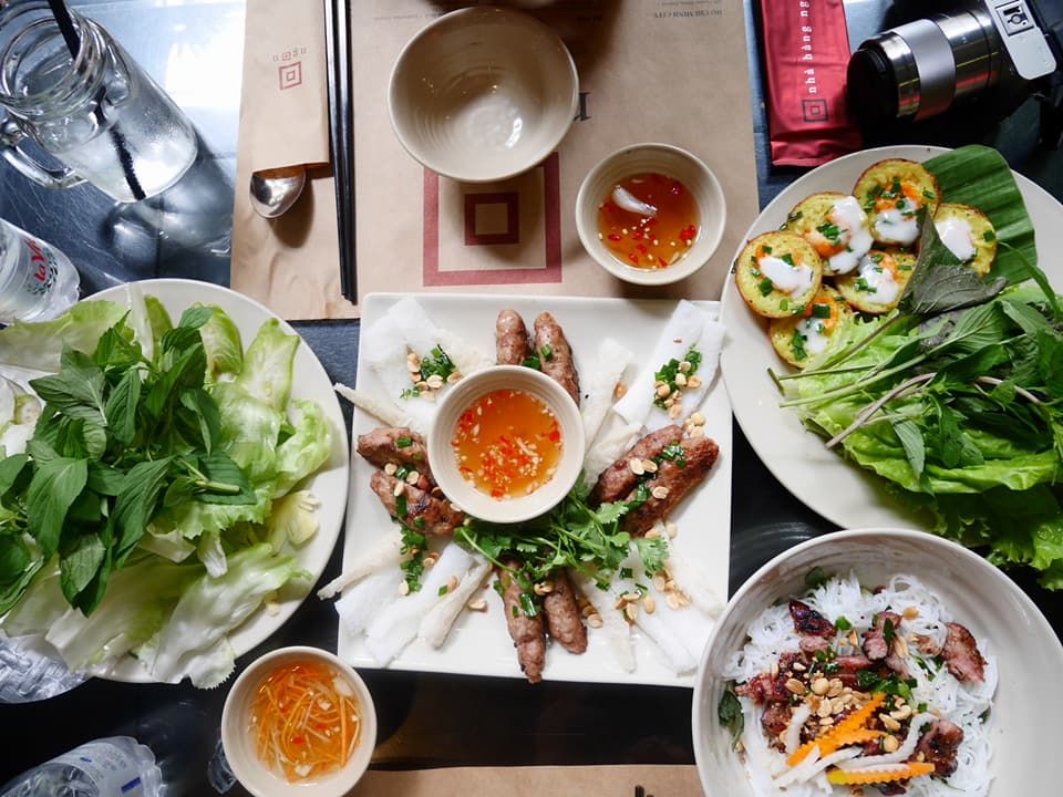 ที่สั่งมามี บุ๋นฉา(หมูย่าง+เส้นขนมจีน) แหนมเนือง (ชื่อนี้เลย) แล้วก็เหมือนเป็นขนมครกแบบคาว(อันนี้จำชื่อไม่ได้)
