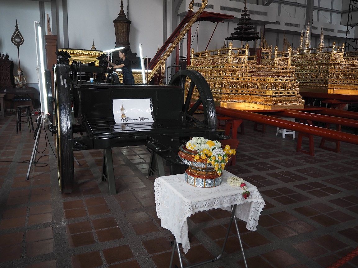 ราชรถที่ไว้สำหรับเชิญพระบรมโกศออกถวายพระเพลิง ถูกเก็บรักษาไว้ที่ โรงราชรถ พิพิธภัณฑสถานแห่งชาติ พระนคร ตั้งอยู่ระหว่างมหาวิทยาลัยธรรมศาสตร์ และโรงละครแห่งชาติ ตรงข้ามสนามหลวงประกอบด้วยหมู่พระที่นั่งต่าง ๆ ได้แก่ พระที่นั่งศิวโมกขพิมาน พระที่นั่งพุทไธสวรรย์ พระที่นั่งอิศราวินิจฉัย หมู่พระวิมาน พระที่นั่งอิศเรศราชานุสรณ์ อาคารประพาสพิพิธภัณฑ์ และ อาคารมหาสุรสิงหนาท (ที่มา : wikipedia https://goo.gl/mekkgn)