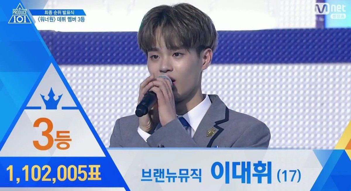 และเช่นเดียวกัน เป็นเพราะการได้รับตำแหน่งสำคัญที่คนดูล้วนให้ความสนใจตั้งแต่แรกอย่างการเป็นเซ็นเตอร์เพลงประจำรายการ และทำให้มีผู้ติดตามเชียร์ในรอบการแสดงต่างๆ จนทำให้สุดท้ายอีแดฮวีได้รับอันดับที่ 3 จากอีพีสุดท้ายของรายการและได้เดบิวต์เป็น WANNA ONE