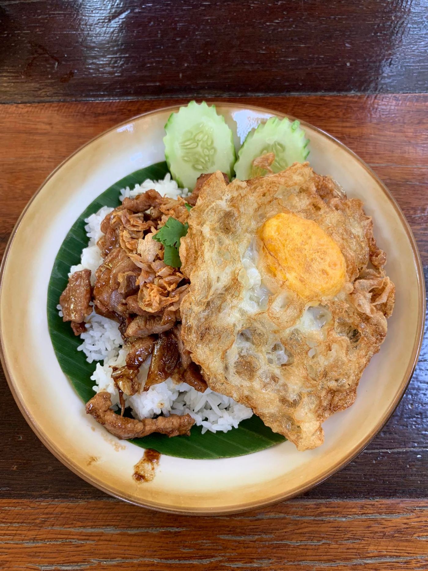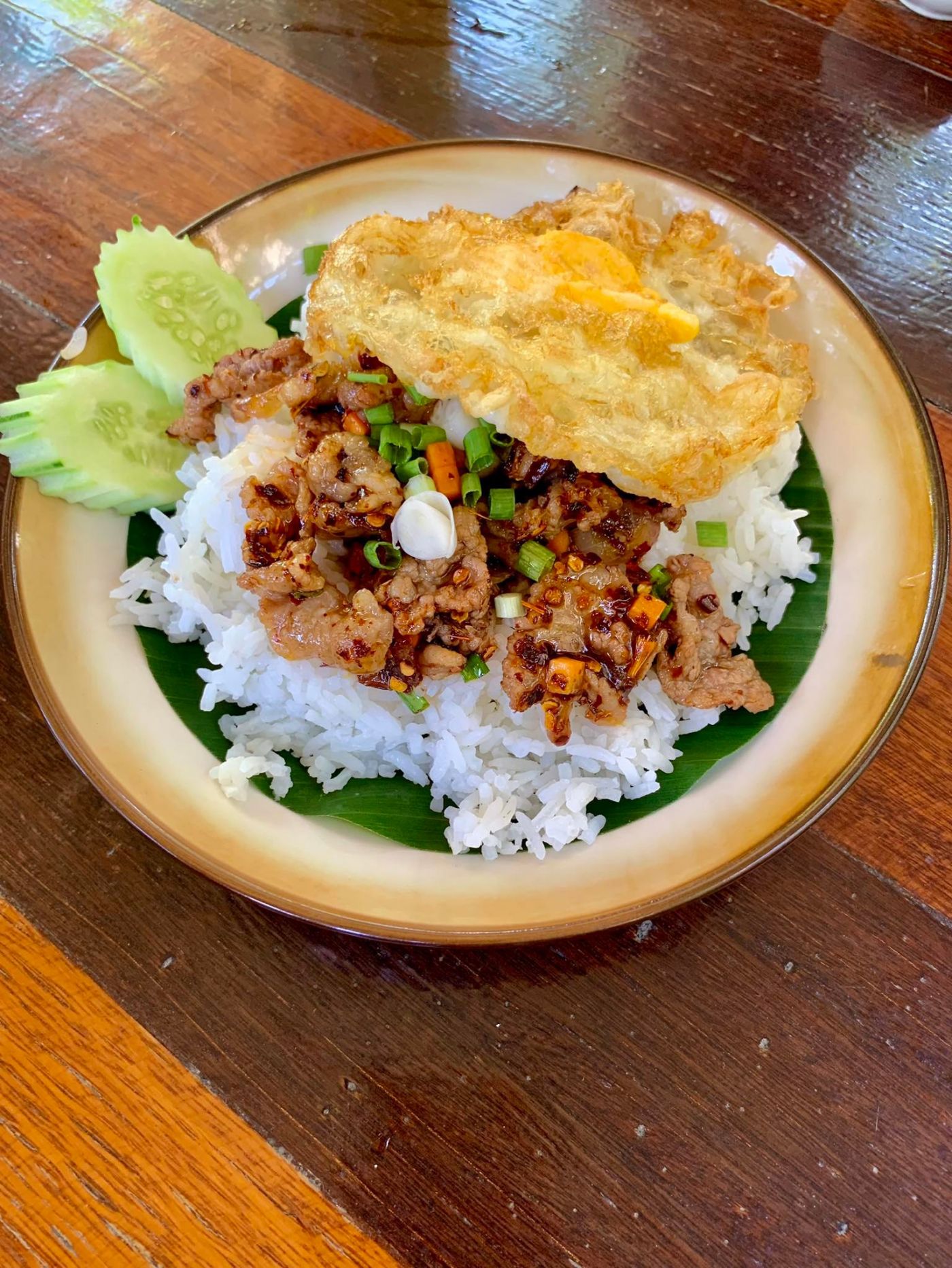 ข้าวเนื้อผัดพริกป่น+ไข่ดาว