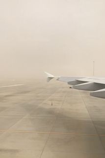 เช้าวันนั้น ฝนตกหนักที่ดูไบ! ชาวเมืองทะเลทรายผู้ไม่คุ้นชินกับฝนก็แตกตื่นจ้า อากาศแย่จ้า หมอกลงจัดมาก ฝนก็กระหน่ำ เอาเครื่องลงไม่ด๊ายยยยย นักบินเลยประกาศว่าเราจะต้องบินวน on hold กันประมาณ 20 นาทีนะจ๊ะ