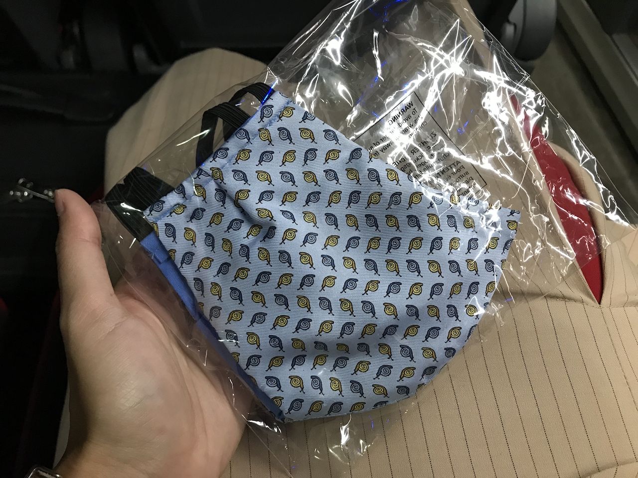 และก่อนที่เราจะกลับไปนั่งที่เพื่อแลนด์ดิ้ง สิ่งที่เราทำเสมอคือเดินไปขอบคุณผู้โดยสารทุกคนที่เดินทางกับเราในวันนี้ ซึ่งก็ได้รับคำอวยพรเนื่องในวันคริสมาสต์กลับมามากมายจนใจฟู จนกระทั่งวนกลับมาที่ Mr. W ซึ่งเขาก็ย้ำกับเราว่า You're capable of more than you know และขอให้เราเชื่อในตนเองอยู่เสมอ แล้วเขาก็ยื่นหน้ากากผ้าอันนี้มาให้ บอกว่าเป็นของขวัญคริสมาสต์และปีใหม่ พร้อมกับขอบคุณเราที่ทำให้การเดินทางในวันนี้เป็นเรื่องราวดีๆ ที่น่าจดจำ