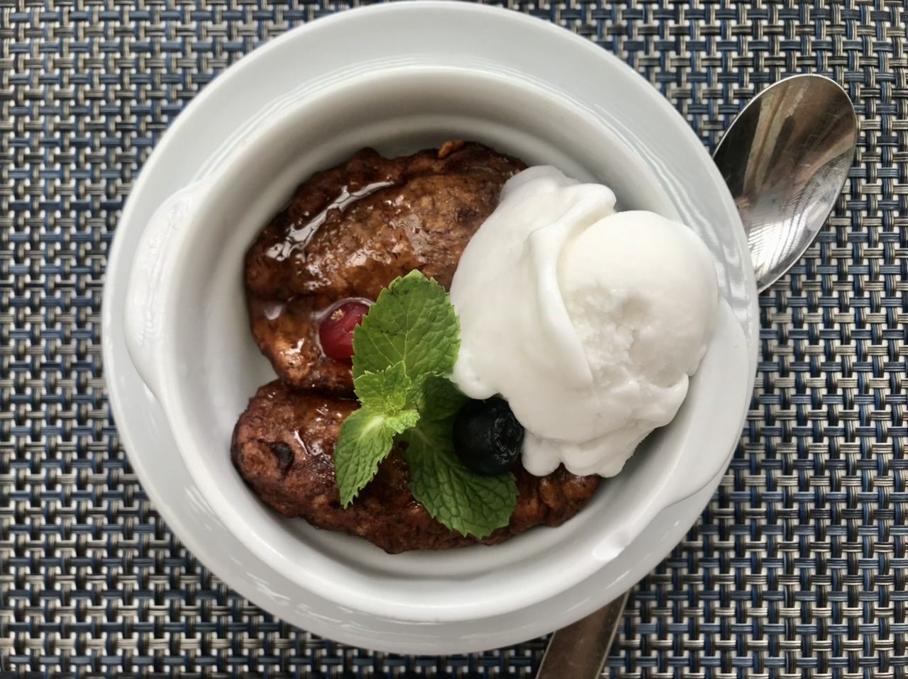 และแล้วก็มาถึงเมนูของหวานกันบ้างค่ะ ด้วยความที่พืชพรรณที่ขึ้นในเซเชลส์นั้นล้วนแต่เป็นพันธุ์ไม้เขตร้อนทั้งนั้นเลย ฉะนั้นของหวานที่ฮอตฮิตของที่นี่ก็ทำมาจากกล้วยและมะพร้าวเป็นหลัก จานนี้คือ Banana Flambé Fritters ที่เสิร์ฟพร้อมกับไอศกรีมมะพร้าวแสนอร่อยค่ะ
