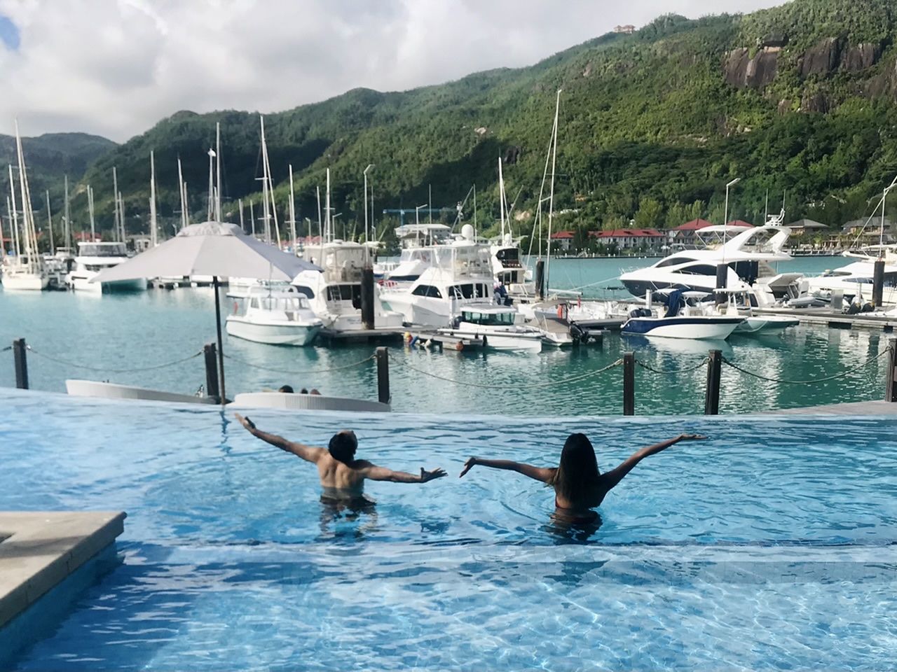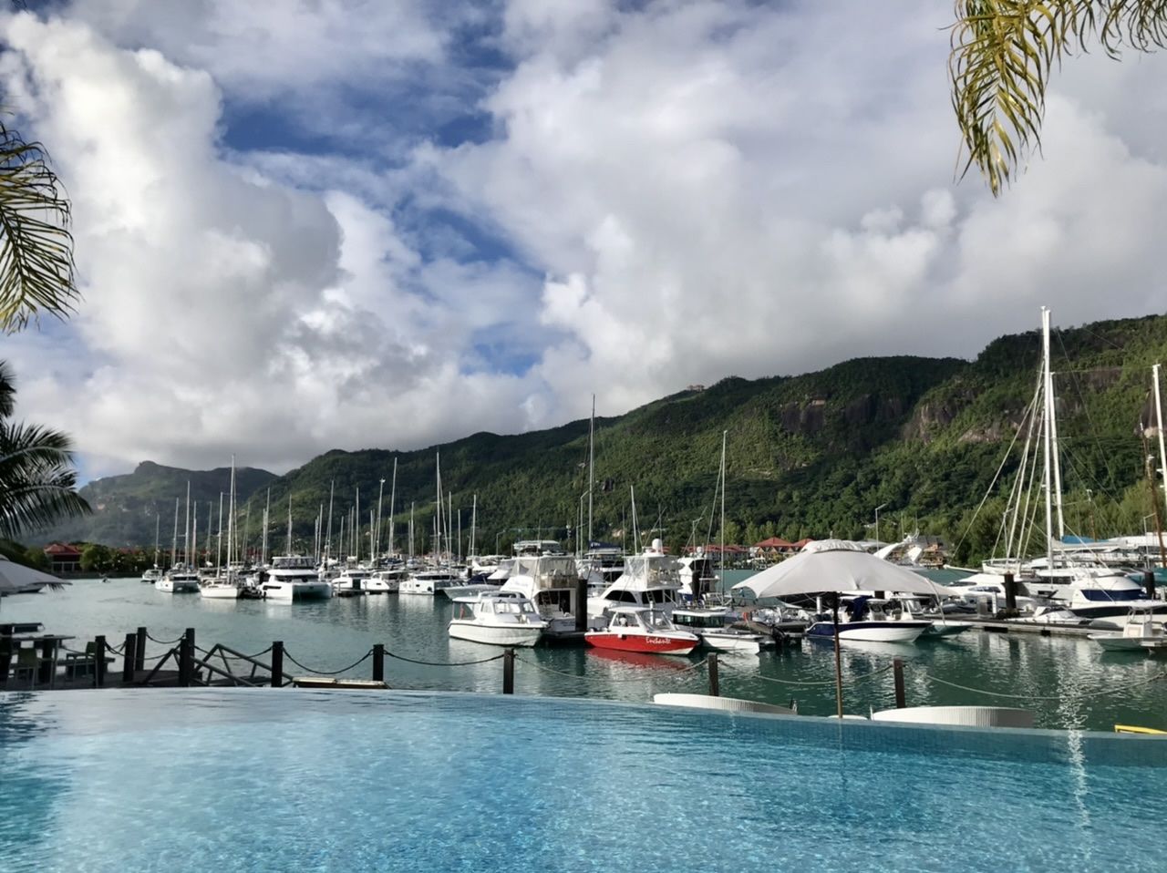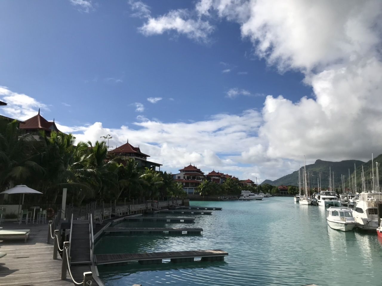 โรงแรมที่เราพักอยู่นั้นตั้งอยู่บนเกาะ Eden Island ที่ตั้งอยู่ไม่ห่างจาก Mahe Island ที่เป็นเกาะหลักของที่นี่ค่ะ เราไม่ได้รับอนุญาตให้ออกไปนอกจากบริเวณของโรงแรมเนื่องจากเป็นมาตรการในการป้องกันการแพร่ระบาดของโควิด (แน่ล่ะ เจ้าพวกลูกเรือที่ดึ๋ง ๆ ไปมารอบโลกอาจจะมีเชื้อไวรัสอยู่ในร่างกายก็เป็นได้ แม้จะได้รับวัคซีนกันแล้วก็เถ๊อะ) เลยอดออกไปเที่ยวเล่นในเมือง Victoria เมืองหลวงของเซเชลส์ซึ่งเป็นเมืองหลวงที่เล็กที่สุดในโลก แต่ก็ยังดีที่ไม่ต้องอุดอู้อยู่แต่ในห้องนอนอีกต่อไป สามารถลงมารับประทานอาหารในร้านและใช้พื้นที่ส่วนกลางได้ ฮูเร่!
