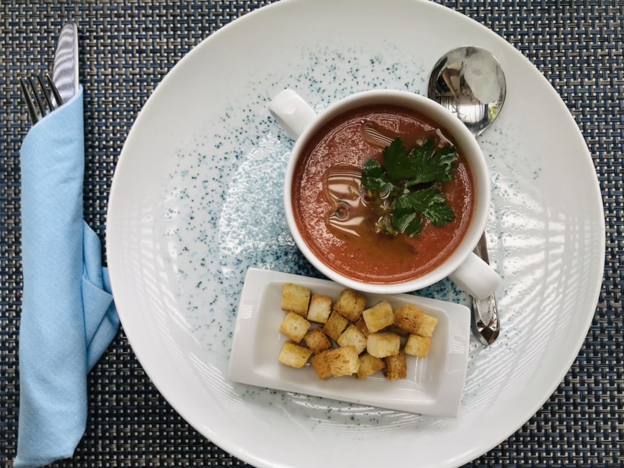 วิธีการทำ Gazpacho ก็ง่ายมาก (จากการไปขอสูตรจากเพื่อนร่วมงานชาวสเปนที่นั่งกินลมชมวิวอยู่ด้วยกัน) เริ่มจากเอามะเขือเทศ กระเทียม น้ำมันมะกอก บัลซามิก หัวหอมใหญ่ แตงกวา ขนมปังกรอบมาปั่นรวมกัน ปรุงรสด้วยเกลือแล้วเอาไปแช่ตู้เย็น จบ!