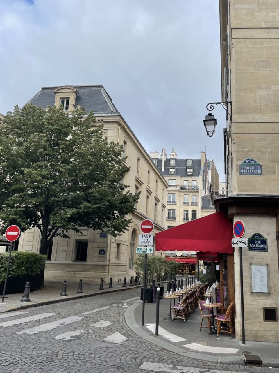 ทริปเข้าเมืองในวันนี้เป็นไอเดียของอายะและโมโจที่ต่างคนต่างวางแผนกันมาจากบ้านเสียดิบดีว่าใครอยากไปทำอะไรที่ไหนบ้าง อย่าง Café de Flore นี้ก็เป็นความตั้งใจของอายะที่อยากเริ่มต้นวันด้วยกาแฟร้อน ๆ และครัวซองต์หอมกรุ่น สำหรับเส้นทางเดินเล่นในเมืองนั้นโมโจรับหน้าที่เป็นไกด์นำทางเพราะเขามีแพลนสถานที่ที่อยากไปยาวเป็นหางว่าว ส่วนเราผู้ไม่อินังขังขอบกับปารีสเท่าไรแต่ติดสอยห้อยตามมาร่วมแชร์ค่าอูเบอร์ด้วยเพราะมีเป้าหมายในใจคือขอแวะร้านขายสีน้ำตรง Pont du Carrousel เพียงที่เดียวเท่านั้นจึงเออออไปไหนไปด้วยตามแต่ที่สองคนนั้นจะตกลงกัน