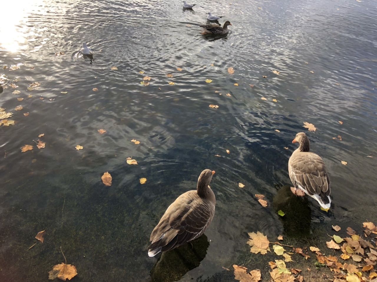เด็ก ๆ ต่างตื่นเต้น ชี้มือชวนพ่อแม่ดูเหล่าเจ้าเป็ดน้อย บ้างก็โยนขนมปังให้ บ้างก็วิ่งไล่หมู่นกพิราบที่กรูเข้ามาจิกเศษขนมปัง