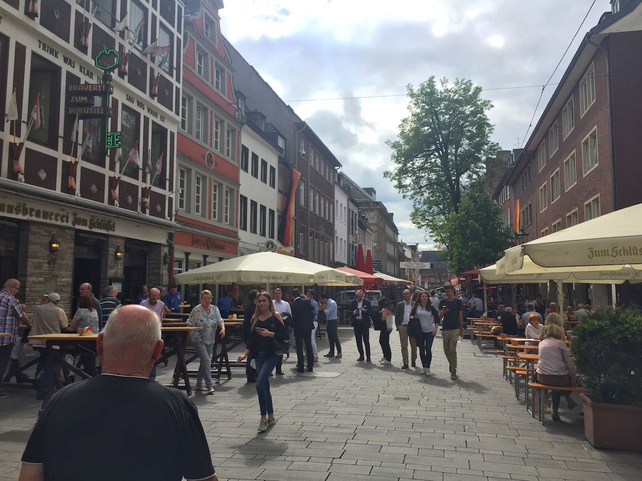 เรานั่งรถไฟเข้าเมืองและต่อรถไฟใต้ดินอีกทีนึง โผล่ดึ๋งอยู่ใจกลางเมืองดุสเซลดอร์ฟเรียบร้อย เกิดงงๆเก้ๆกังๆอยู่ก็มีคุณลุงคนนึงเดินมา Guten tag! แล้วอธิบายว่าตอนนี้เราอยู่บนถนนเส้นไหน เดินไปทางนี้จะเจออะไรบ้าง เราก็ขอบคุณกันยกใหญ่เลย