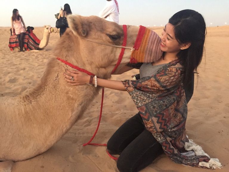 เข้าไปด้านในก็มีเวทีและมีโต๊ะรอบๆ มีชุดอาบาย่าให้ลองใส่ มีเหยี่ยวให้ถ่ายรูปด้วย(แต่เราหาไม่เจอ พลาดเลย ไม่ได้ถ่ายรูปด้วย) ส่วนด้านหน้ามีให้ขี่อูฐวนไปวนมาห้านาที ก็โอเค ถือว่าเป็นประสบการณ์เนอะ