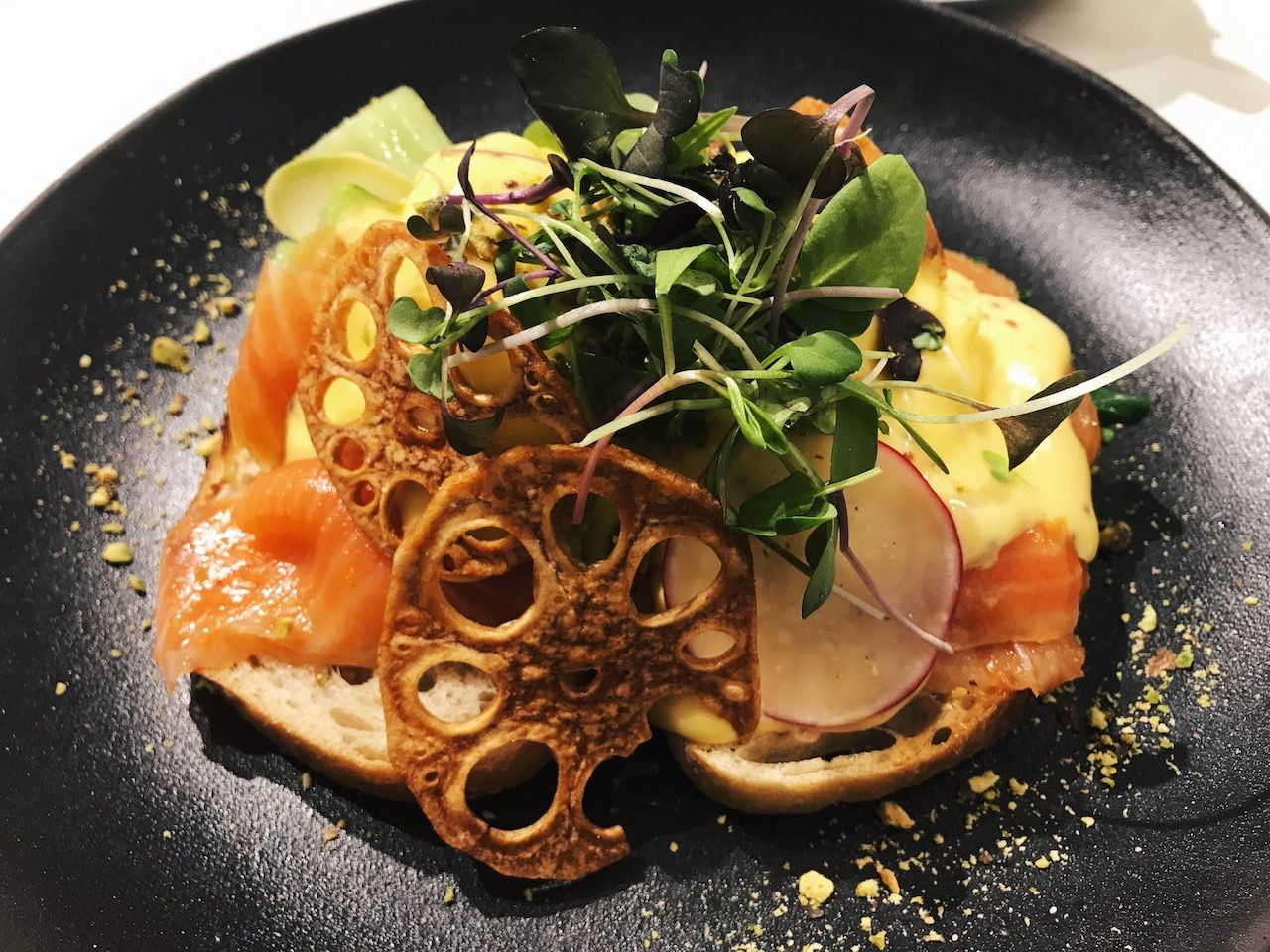 และประมาณ 10 โมงเช้าของวันรุ่งขึ้นเราแวะเวียนมาใหม่ สั่ง Egg Benedict มาทานให้สาสมกับความอยาก โซ้ยแบบรีบๆเพราะต้องกลับไปเตรียมตัวบินต่อ