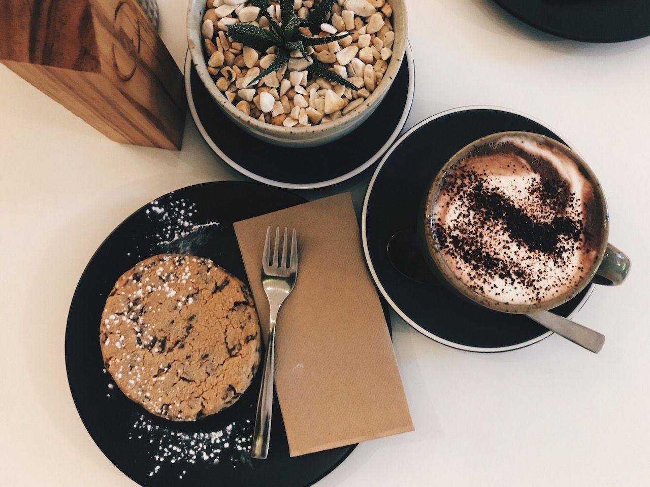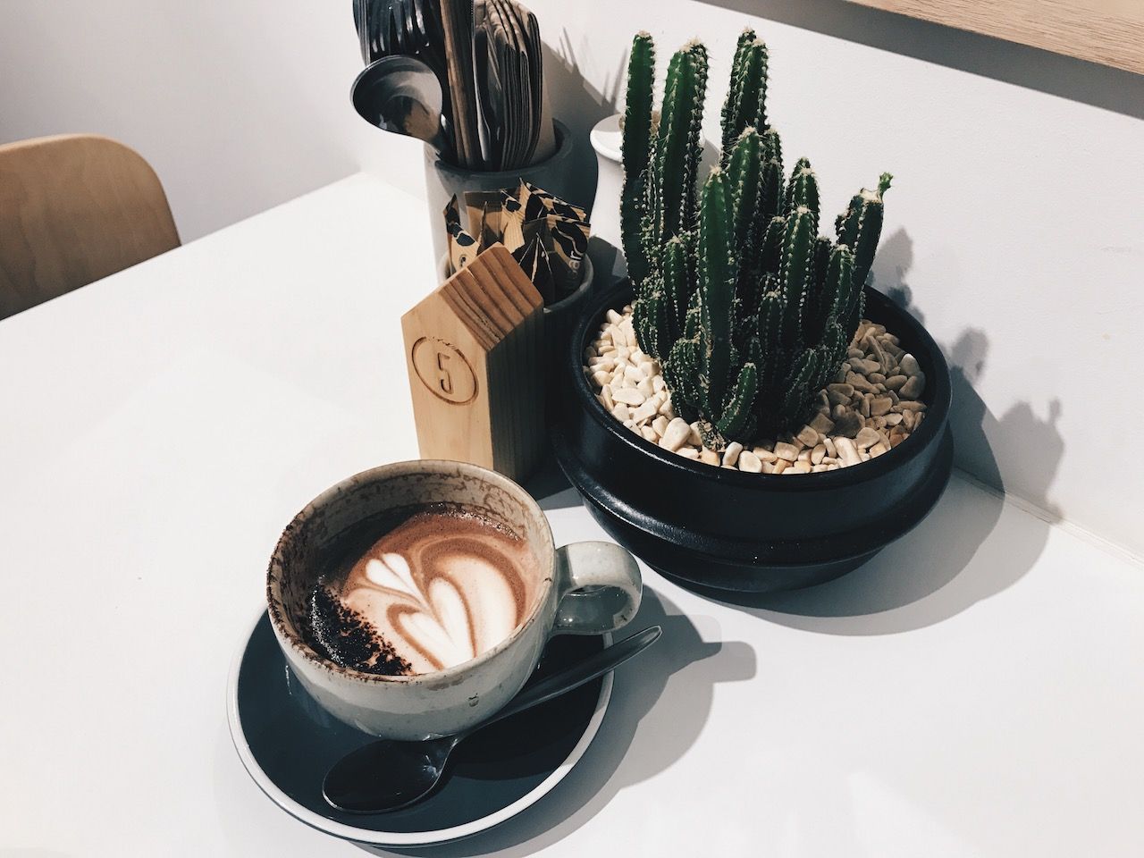 กินเสร็จแล้วก็อิ๊มอิ่มแต่ก็ยังไม่อยากกลับไปนอนอยู่ดี เราเลยเดินเข้าไปที่ร้าน The Kimchi Cafe ตรง Lorne Street (เส้นนี้เต็มไปด้วยร้านอาหารเอเชียนมากมายและมีซุปเปอร์มาเก็ตของจีนเล็กๆด้วย) ร้านนี้กลายเป็นร้านติดดาวในดวงใจของเราไปเลยเพราะที่นี่มี 2 โซนให้เลือกนั่ง มีโซนคาเฟ่ด้านในที่ตกแต่งด้วยโทนสีขาว มีต้นไม้น่ารักมุ้งมิ้งและเคาเตอร์ชงกาแฟ ส่วนโซนด้านนอกเป็นเหมือนสวนหลังบ้ายเปิดโล่ง มีบาร์และที่นั่งเก๋ๆ