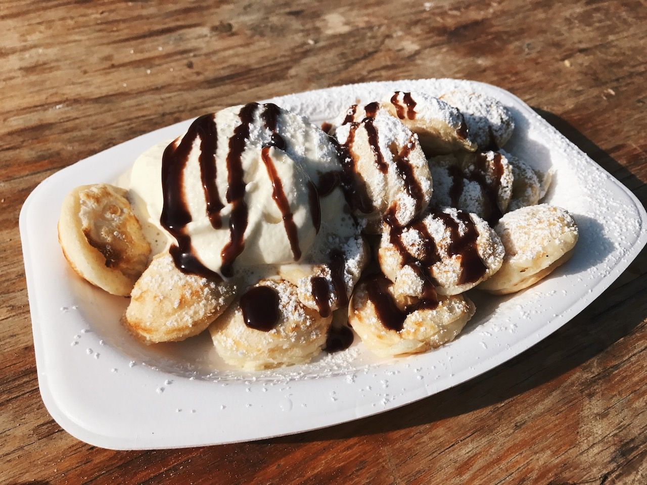 เราออกมาเดินเล่นข้างนอกก่อน มีวงดนตรีเปิดหมวกมากมายและ food truck หลากหมายให้เลือกสรร ซึ่งเราก็ไปสะดุดตากับร้านแพนเค้กที่มีสามสาวเป็นคนขาย คนต่อแถวเยอะแยะเลยแหละ