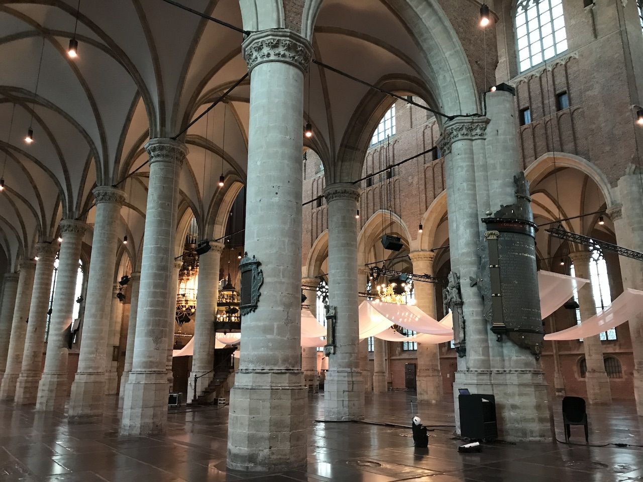 เราผ่านเข้าไปชมในโบสถ์ Pieterskerk ที่มีความสำคัญของเมืองไลเดนและประวัติศาสตร์ของเนเธอแลนด์ (ซึ่งเราจำไม่ค่อยได้แล้วว่าเกิดอะไรขึ้นที่นี่) เอาเป็นว่าปัจจุบันนี้ทางเมืองไลเดนได้เปลี่ยนโบสถ์แห่งนี้ให้เป็นที่ให้เช่าจัดนิทรรศการไปแล้ว (โบสถ์อื่นๆก็เช่นกัน เปลี่ยนฟังชั่นก์การใช้งานไปหมดแล้ว)