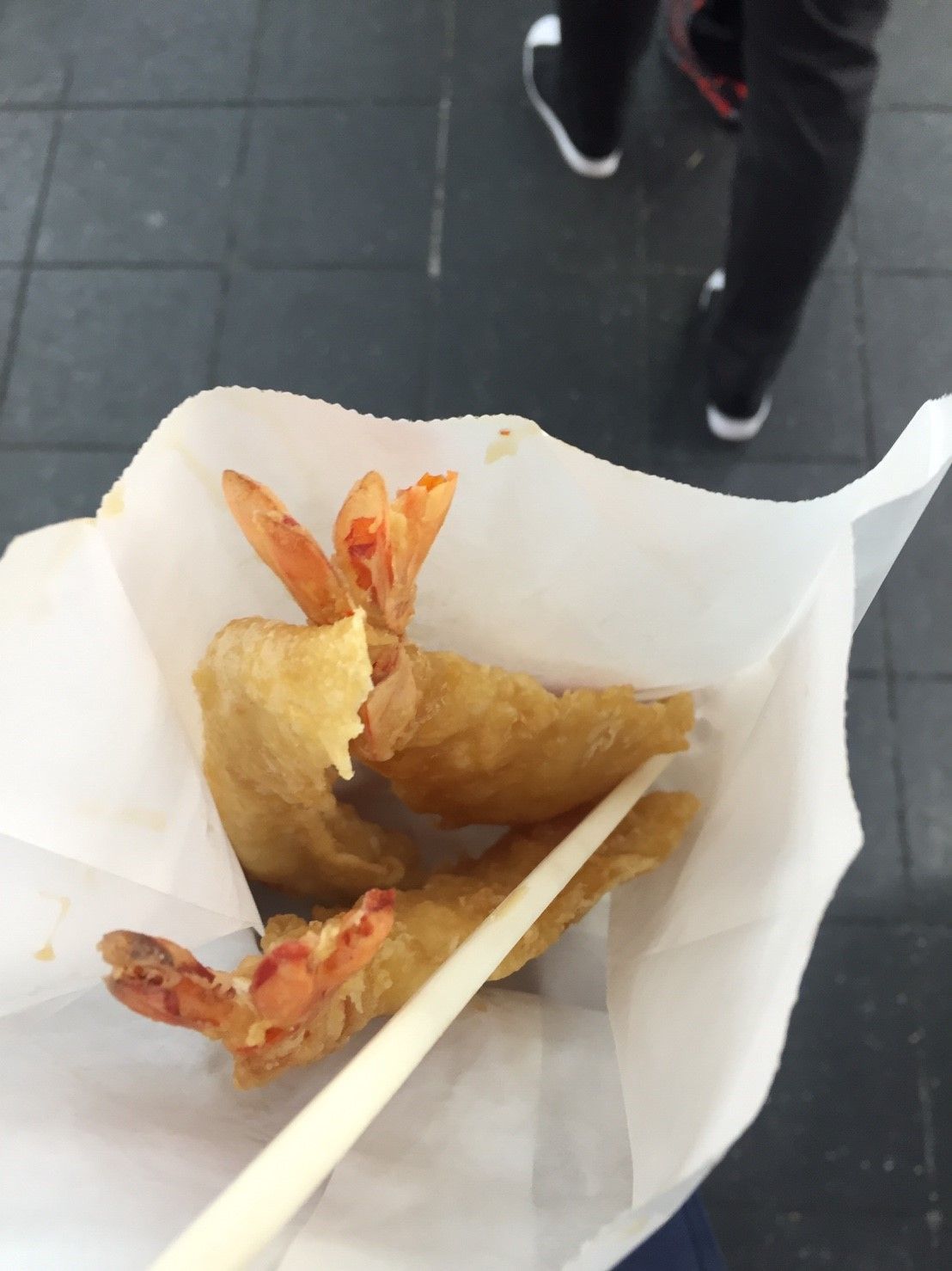 พวกเราเดินออกมาจากปากซอยบ้าน และตกลงกันว่าจะแยกหาอะไรกินกันก่อนที่จะไปเที่ยว ด้วยความที่ผมยังงงๆ เหวอๆ เบลอๆ ผมเลยคอยเดินตามพี่ปูกับพี่เจนไปก่อน (พี่ปูกับพี่เจนเคยมาเที่ยวญี่ปุ่นกันหลายรอบแล้วครับ) เราเดินวนเวียนมองนู่นนี่กันอยู่นานก่อนที่พี่เจนจะตัดสินใจกินซูชิ ส่วนพวกแม่ๆและเด็กๆ ไปกินร้านเท็มปุระกัน ผมเลือกที่จะตามกลุ่มพี่เจนไป