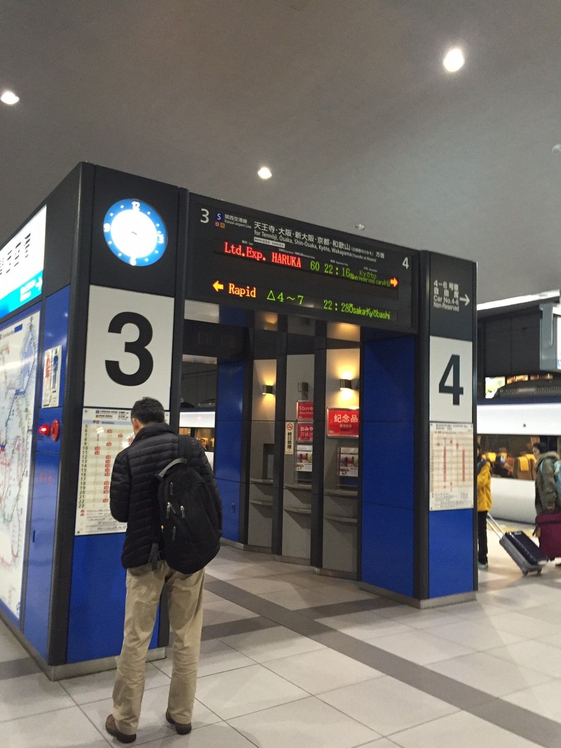 เดินหนาวหำหดได้สักพัก พี่ปูก็พาพวกเราไปซื้อตั๋วนั่งรถไฟฟ้าไปยัง Osaka เรายืนรอรถกันได้แค่แป๊บเดียว รถไฟก็มา (แถมมาตรงเวลาที่บอกไว้บนหน้าจอด้วย) ผมขึ้นรถไปนั่งแชทกับแฟนได้สักพักนึงก็หลับไป