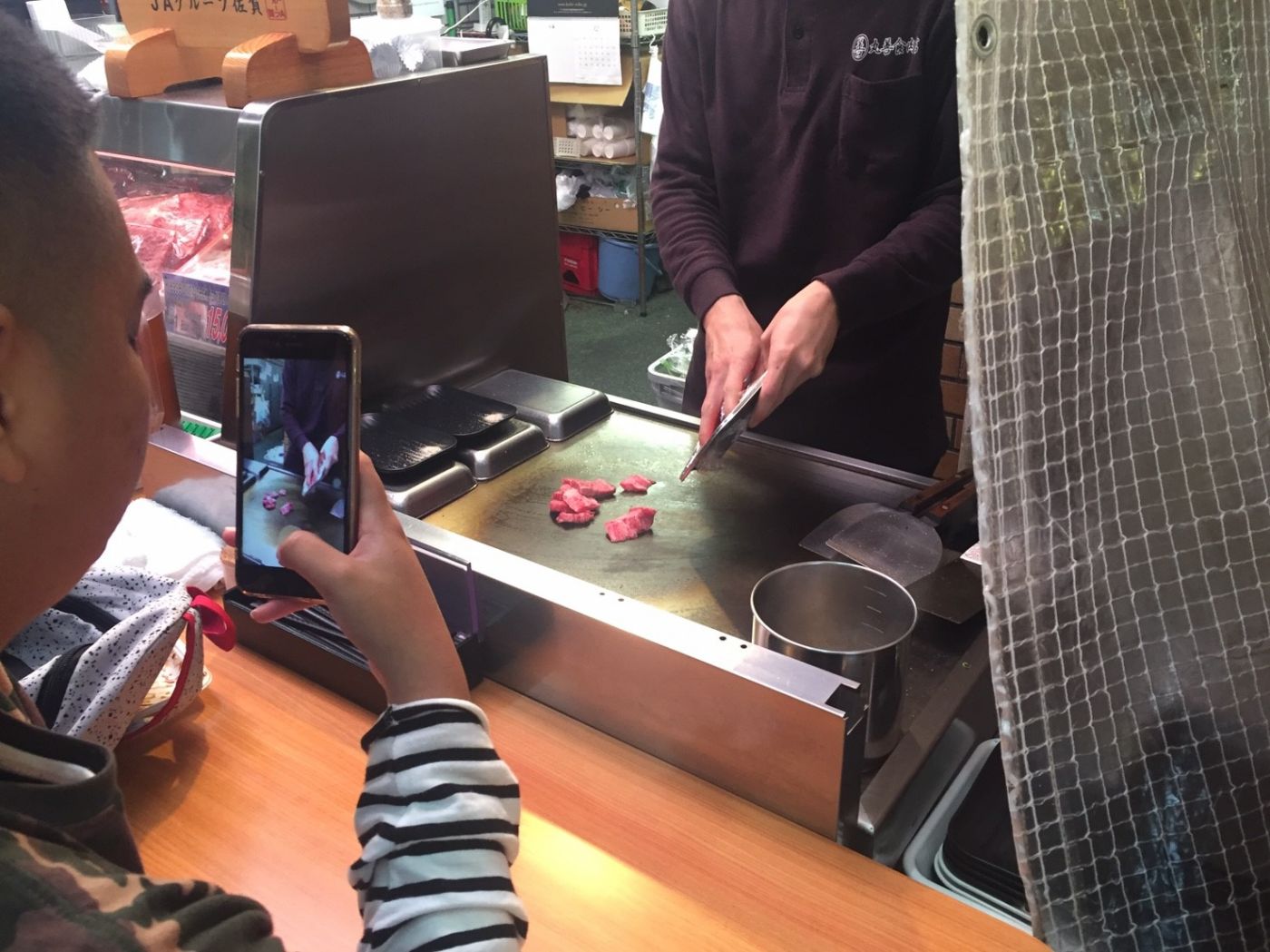 เดินซัดปลาไหลไปสักพักก็มาถึงร้านที่พี่ปูบอกไว้ หน้าร้านเป็นร้านขายปลาดิบ มีที่นั่งหน้าร้านเล็กน้อย ส่วนร้านข้างๆเป็นร้านขายเนื้อโกเบ เราสามารถเลือกเนื้อแล้วจะให้พ่อครัวปรุงให้ก็ได้หรือจะซื้อกลับบ้านก็ไม่ว่ากัน