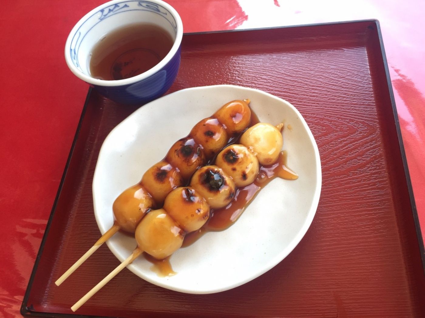 เดินออกจากวัดได้สักพักเราก็มาเจอกับร้านขายขนม ซึ่งอยู่บริเวณทางออกจากวัดพอดี ในร้านมีขายขนมดังโงะ (ขนมที่เป็นแป้งๆ คล้ายๆ โมจิ แต่จะหนึบกว่า) โดยมีดังโงะหลากหลายแบบให้เลือก ทั้งแบบราดซอสหวานๆ มาแบบเสียบไม้ แบบร้อนๆ มาพร้อมถั่วแดง หรือแบบมาพร้อมไอศกรีมก็มีให้เลือก ซึ่งผมกับแม่สั่งแบบราดซอสหวานและแบบร้อนมาคนละถ้วย ซึ่งรสชาติก็โอเคเลยครับ อร่อย หวานๆ หนึบๆ กินเพลินดี