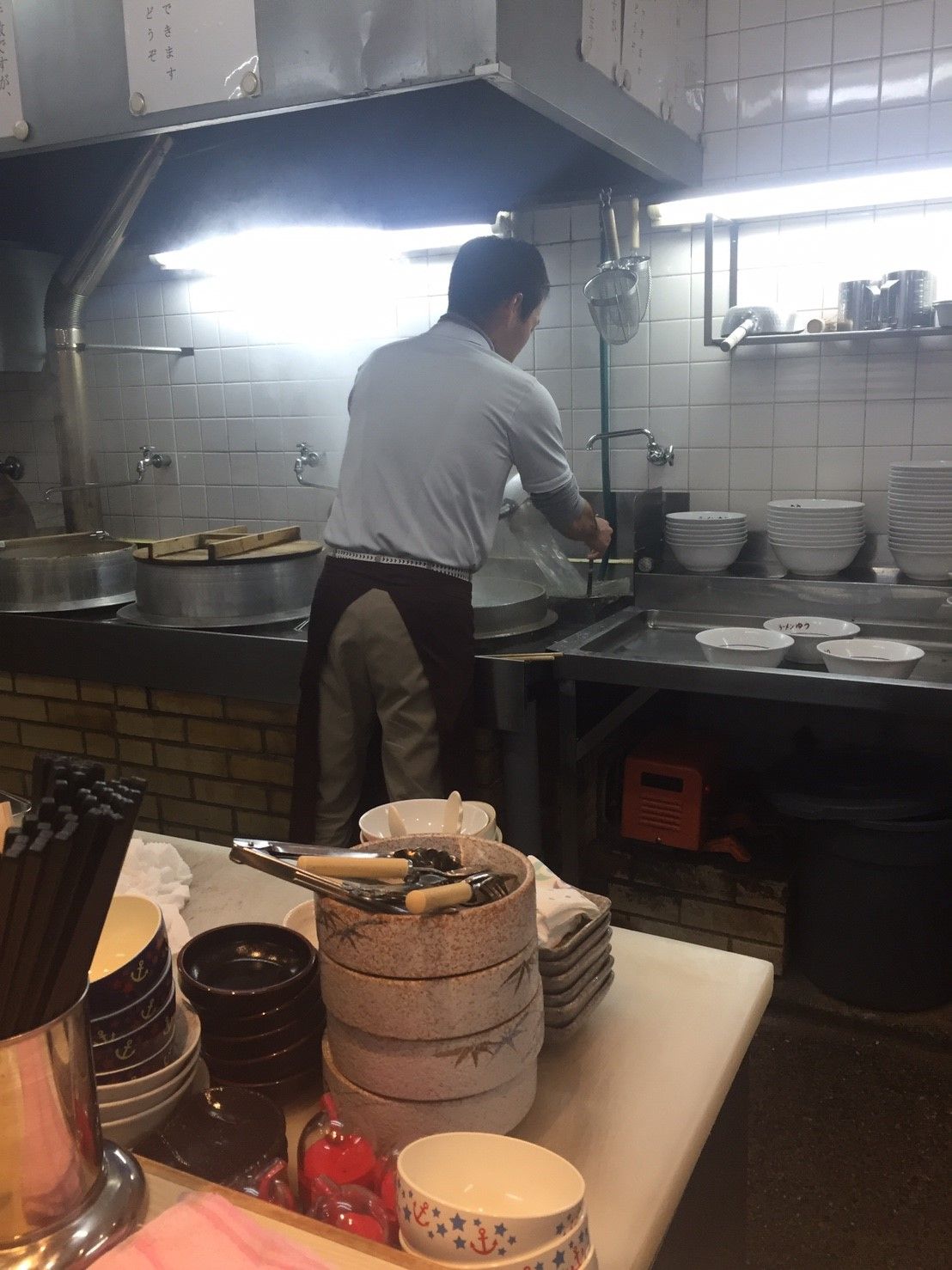ผมสั่งราเมนมิโซะธรรมดาไปหนึ่งชาม ระหว่างรอเราเห็นกระบวนการทำสุดแสนจะโปรของลุงทั้งการจ้วงตักมิโซะ การหั่นหมู การเช็คความนุ่มแข็งของเส้น กระบวนการตักน้ำซุปของลุง คือนั่งดูทุกอย่างแล้วมันเพลินมาก