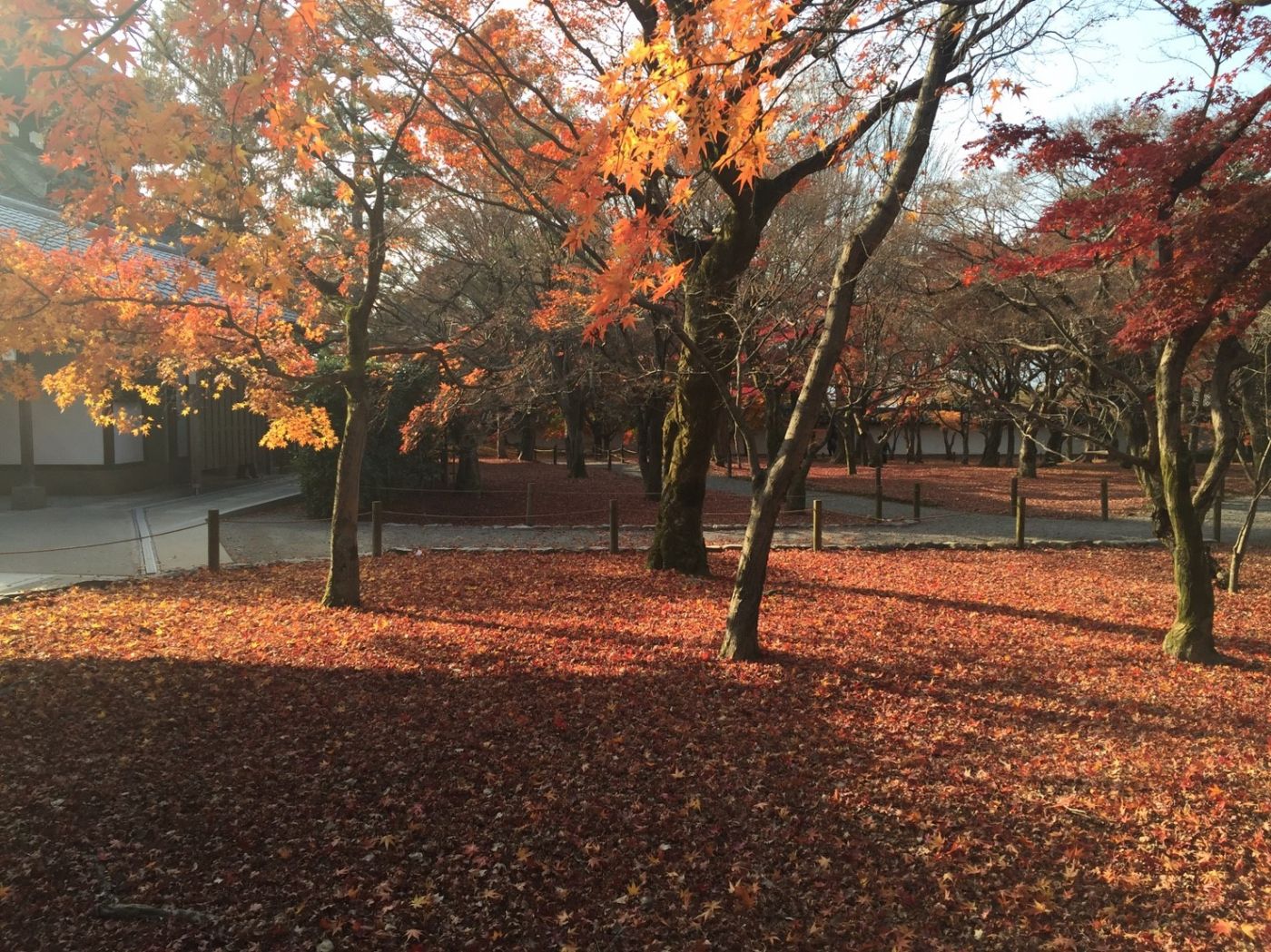 พี่เจนกับพี่ปูเล่าว่าปีที่แล้ววัดนี้คือวัดที่สวยที่สุดในแถบคันไซแต่ครั้งนี้อาจจะไม่ได้สวยงามขนาดนั้น เพราะช่วงที่เราไปกันนั้น ใบไม้แดงมันร่วงไปหมดแล้ว อาจจะได้เห็นก็เพียงแค่ใบไม้เกาะๆ ตามต้นนิดหน่อย หรือเห็นแค่ใบไม้ที่กองอยู่ตามพื้นเท่านั้น