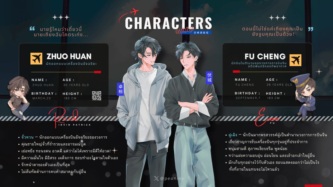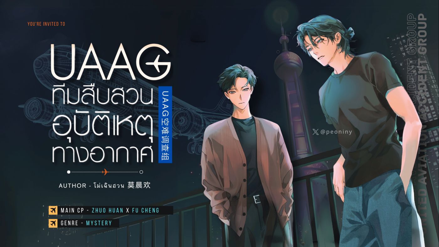 กลับมาเจอกันอีกครั้งกับนิยายของคุณโม่เฉินฮวนค่า สำหรับ UAAG ทีมสืบสวนอุบัติเหตุทางอากาศ《UAAG空难调查组》เรื่องนี้แค่ได้ยินชื่อก็น่าสนใจแล้ว ส่วนตัวเราชอบนิยายแนวสืบสวนอยู่แล้วแต่ไม่เคยอ่านแนวอุบัติเหตุทางเครื่องบินแบบนี้มาก่อนเลยค่ะ 555 และพออ่านจบยกให้เป็นหนึ่งในนิยายเล่มโปรดจากคุณโม่เฉินฮวนทันทีเลย เนื้อเรื่องครบรส อ่านเข้ามือสุดๆ น่าติดตามทั้งพาร์ทสืบสวนแบบจัดเต็ม เลิฟไลน์ความรักแบบผู้ใหญ่ที่กร้าวใจและเคมีเข้ากันสุดๆ แถมยังมีดราม่ากรุบกริบๆให้ใจเต้นตุ้บ รวมถึงมิตรภาพของเพื่อนร่วมทีมอีกต่างหาก ถึงตอนจบจะรวบรัดไปนิด แต่เอาเป็นว่าติดอันดับ top 5 ปีนี้แน่นอน! (☆ω☆)