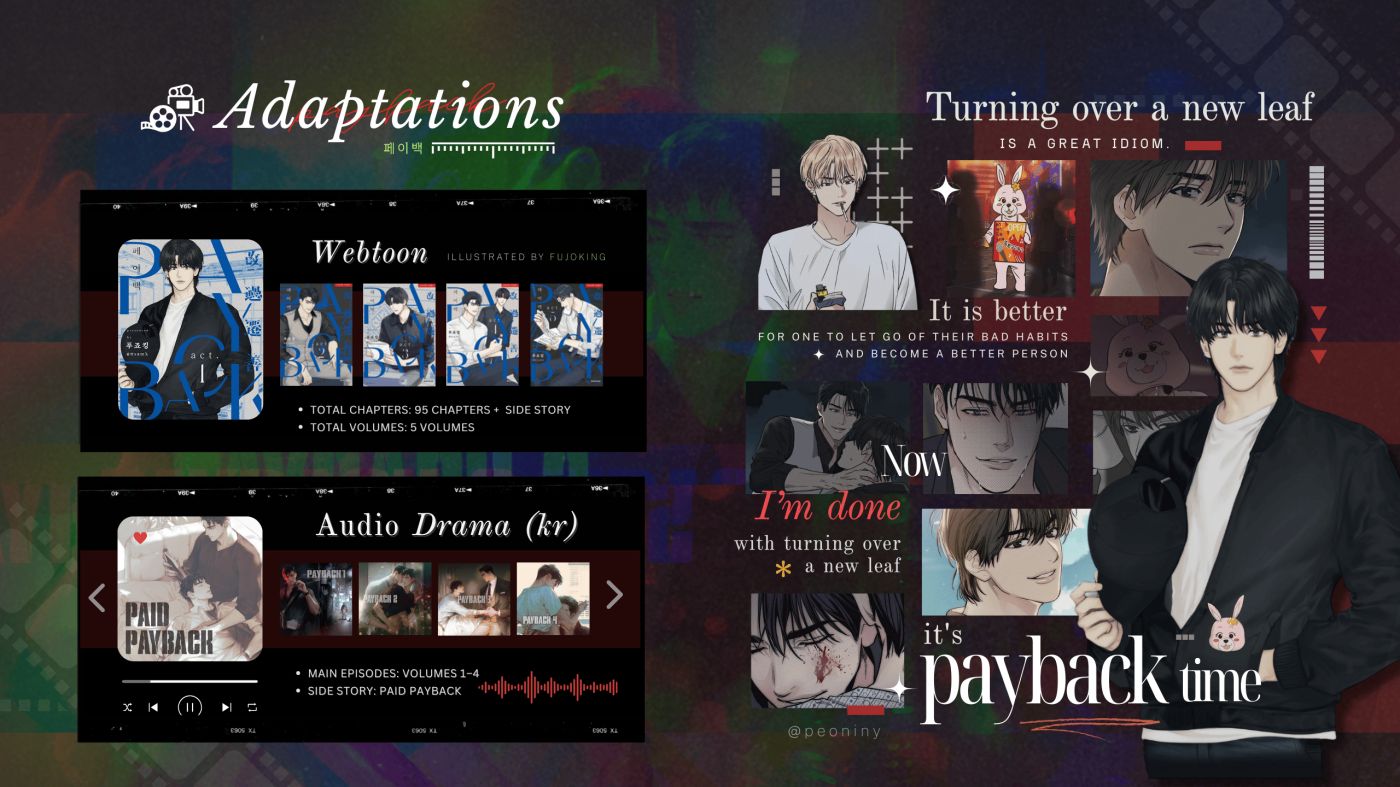 สำหรับ PAYBACK <페이백> เป็นนิยายแนวดราม่าโรแมนติกที่ขับเคลื่อนด้วยสงครามจิตวิทยาการล้างแค้นโดยมีวงการบันเทิงเป็นฉากหลัง เล่าถึงเรื่องราวของ อียูฮัน อดีตเด็กแว๊นแก๊งอันธพาลที่โทษว่าตัวเองเป็นต้นเหตุของการสูญเสียครอบครัวไป เขาจึงตัดสินใจลงโทษตัวเองด้วยการทำงานอย่างหนักเพื่อชดใช้หนี้ค่ารักษาพยาบาลของแม่ กระทั่งวันหนึ่งเขาค้นพบความจริงเบื้องหลังการตายของน้องชาย ด้วยเหตุนี้จุดจบของการกลับตัวกลับใจจึงสิ้นสุดลง และเริ่มต้นใหม่ไฉไลด้วยการแก้แค้น พร้อมๆกับความสัมพันธ์ระหว่างเขากับไอ้ประสาท ยุนเจย์ ผู้ถือหุ้นรายใหญ่ของ Dream Ent. ที่น้องยูฮันอ่อยมาได้ด้วยเงินสองร้อยวอนด้วย อิอิ (⁄ ⁄>⁄ ▽ ⁄<⁄ ⁄)