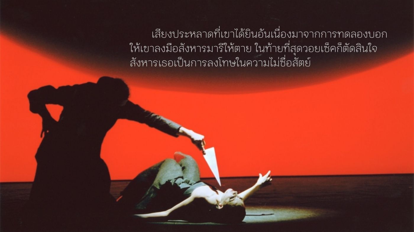 ในค่ำวันหนึ่งที่วอยเซ็คกลับบ้านเพื่อนำเงินทั้งหมดที่หามาได้ให้กับมารี แต่เขากลับเหลือบเห็นภรรยากำลังใส่ตุ้มหูคู่ที่เขาไม่คุ้นเคยจนรู้สึกเคลือบแคลงใจ และในครั้งที่เขาเห็นพฤติกรรมของภรรยาที่ไม่ซื่อสัตย์ต่อตน โลกทั้งใบของวอยเซ็คก็เหมือนแตกสลายลงตรงหน้า ความผิดหวัง ความเสียใจ และความหึงหวงได้รวมตัวกันเป็นความโกรธแค้นรุนแรง และเสียงประหลาดที่เขาได้ยินอันเนื่องมาจากการทดลองบอกให้เขาลงมือสังหารมารีให้ตาย ในท้ายที่สุดวอยเซ็คก็ตัดสินใจสังหารเธอเป็นการลงโทษในความไม่ซื่อสัตย์
