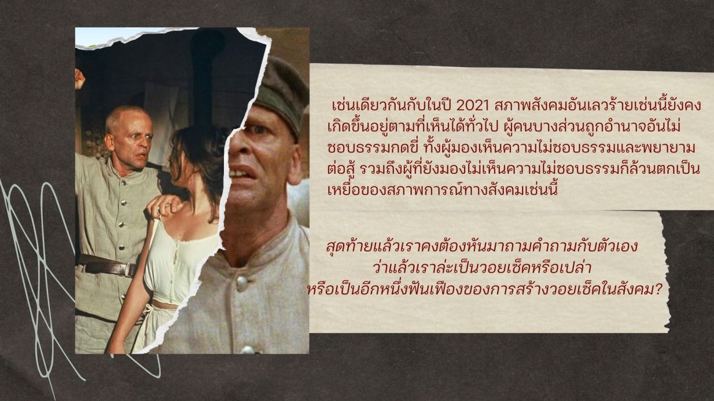 สุดท้ายแล้วเราคงต้องหันมาถามคำถามกับตัวเองว่าแล้วเราล่ะเป็นวอยเซ็คหรือเปล่า หรือเป็นอีกหนึ่งฟันเฟืองของการสร้างวอยเซ็คในสังคม?