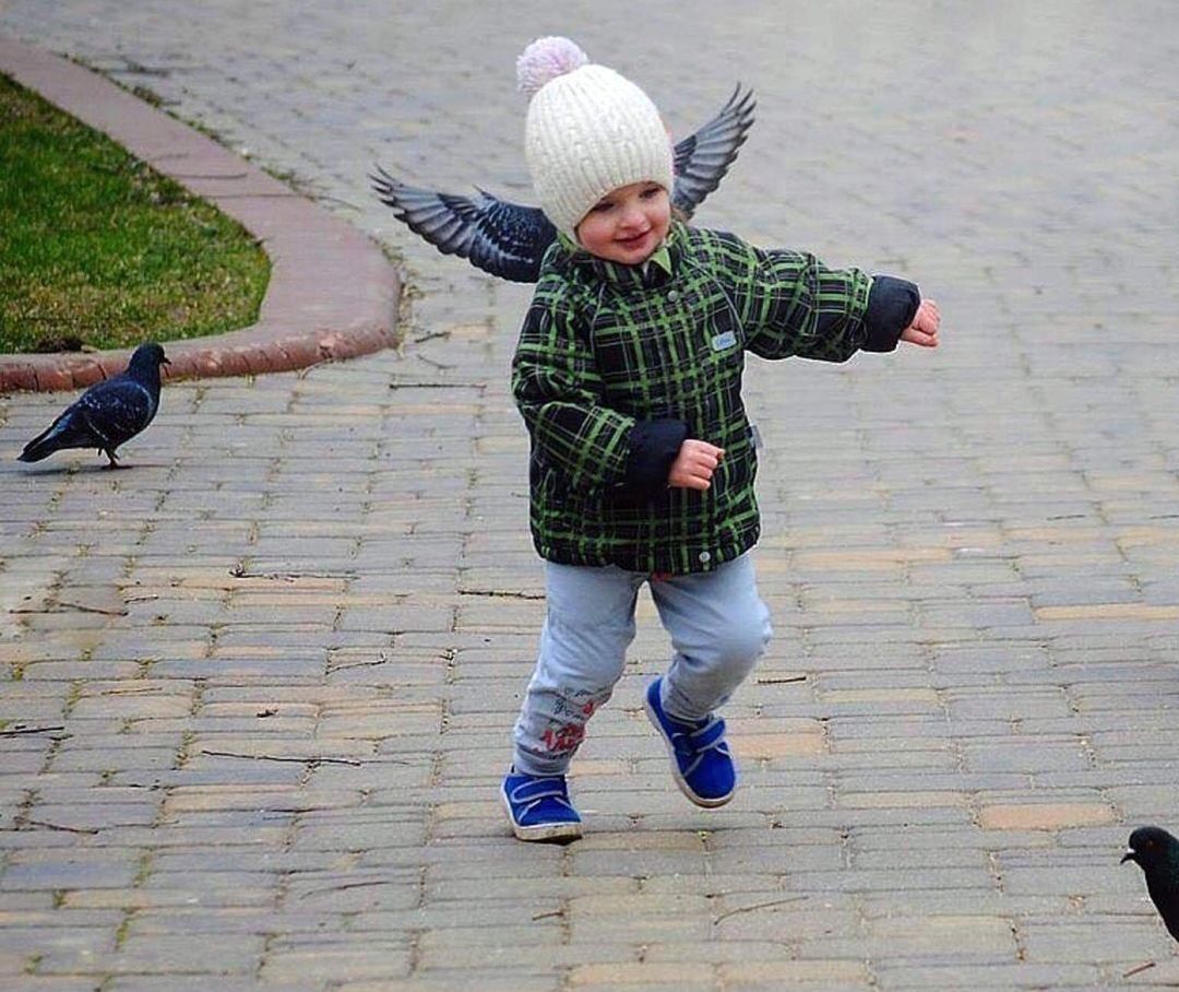 มีภาพปีกนก อยู่ด้านหลังของเด็กน้อย