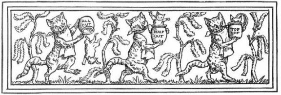 “เรื่องดีๆ มักเกิดขึ้นกับอะไรที่เป็นสามครั้ง” มันพูด “ฉันถูกขอไปเป็นแม่ทูนหัวอีกแล้ว เด็กทารกตัวนี้ขนค่อนข้างดำ อุ้งเท้าเป็นสีขาว แต่ติดตรงที่ว่า ครั้งนี้ไม่ใช่แมวขนสีขาวที่มีแค่ตัวเดียวเรื่องแบบนี้เกิดขึ้นทุกๆ สองถึงสามปี แกจะให้ฉันไป ใช่หรือเปล่า?”