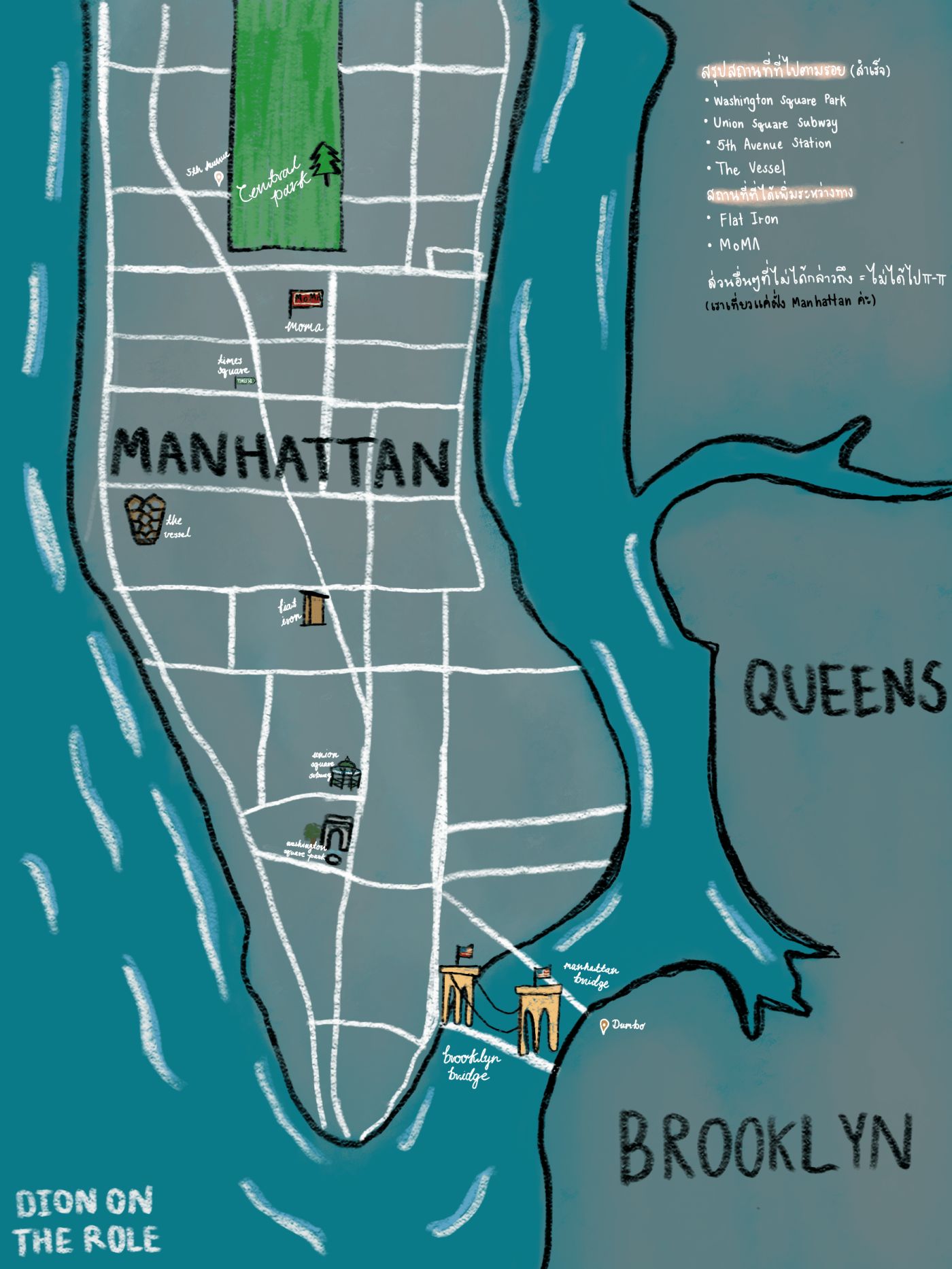 พยายามสุดความสามารถในการวาดแผนที่แล้วค่ะทุกคน ฮ่าๆ เราเที่ยวแค่ฝั่ง Manhattan นะคะ เพราะมีเวลาแค่วันเดียว จริงๆวางแผนจะไป Dumbo ที่ฝั่ง Brooklyn ด้วย แต่มันห่างกันพอสมควรกับย่านที่เราไปพัก เราเลยเลือกแค่ช่วงกลางๆถึงตอนเกือบล่างเท่านั้นค่ะ เอาล่ะ ทีนี้มาดูกันซิว่าเราไปไหนมาบ้าง สังเกตรูปประกอบดีๆนะ มีอะไรให้ดูตอนท้ายด้วย ;)