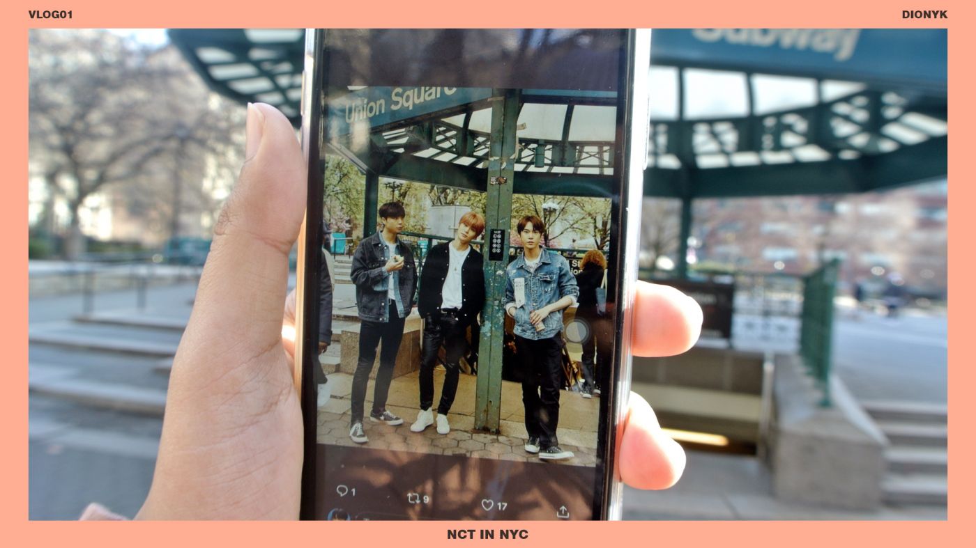 2) Union Square Subway Station - เราก็ไม่รู้ว่า NCT เขามาทำไม แต่ย่านนี้เป็นย่านช็อปปิ้งค่ะ มีของหลากหลายแบรนด์ให้เลือกซื้อ เดินตามบล็อกไปก็จะเจอกับแบรนด์หลากหลายร้านเลย แล้วก็มีจะงานจัดแสดงศิลปะเล็กๆ หรือแม้กระทั่ง local market ก็มีที่ Union Square ซึ่งตอนเราไปตามรอย เราก็เดินเล่นหาของกินไปพลางๆ เพิ่งมาถึงใหม่ๆ ยังไม่กล้าซื้อของเท่าไหร่ค่ะ ส่วนใหญ่มีแต่เรื่องกิน เราไปแม้กระทั่ง Whole Foods ที่อยู่ตรงหน้าสถานี เพราะโดยองไปกินข้าวที่นั่นค่ะ ฮ่าๆ การเป็นติ่งนี่มันสุดยอดจริงๆ บ้ามาก แต่สนุกมากค่ะ มีคนทักด้วยว่า 'I have never seen anyone take a photo of their phones before.' คือเราถ่ายรูปตามรอยจากโทรศัพท์แหละ เขินจัง
