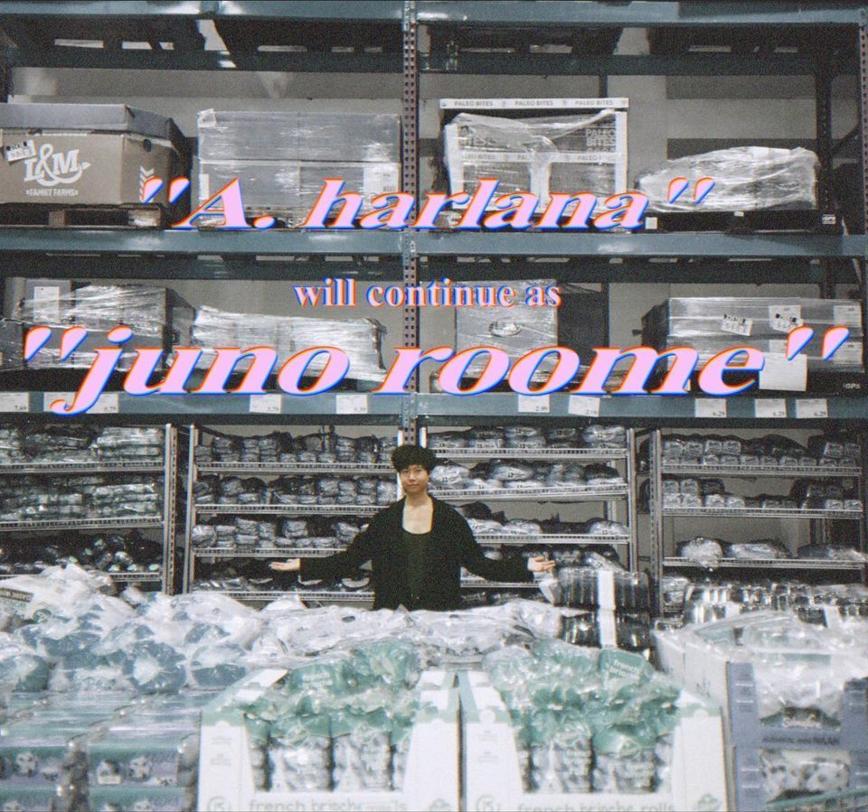 2020 has been a weird year for everyone. // the last few months for me has been mostly a time of uncertainty, unexpected changes and challenges. // fortunately, i’ve recently been able to start slowly regaining some personal clarity and control. // i’ve just parted ways with my label, and have begun to make some structural changes that i believe will best serve the long term goals of this project and my career. // in light of these changes, i’ve decided to shed the name “A. harlana,” and continue the project simply under my own name, “juno roome.” // only the name will differ; everything else about this project will remain exactly the same. // i’m so grateful to everyone who has followed my journey as “A. harlana” thus far, and only hope that you will continue to follow me as “juno roome.” // these changes unfortunately has inevitably delayed the release of the next song “two honey pies,” but it will release soon in the coming weeks and new music will steadily follow thereafter. // thank you for everything. much love to you all. -juno.