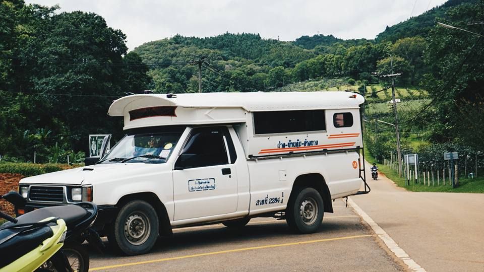 2 -  อันนี้คือพาหนะที่เราใช้ขึ้นดอยอ่างขางกัน อ่านรีวิวมาว่าเหมาค้างคืนราคาประมาณ 1800 ซึ่งราคาก็สูงอยู่พอสมควร เลยคิดว่าเอาวะไปถึงที่ต้องมีคนที่จะขึ้นอ่างขางมาช่วยหารค่ารถแหละว้า...