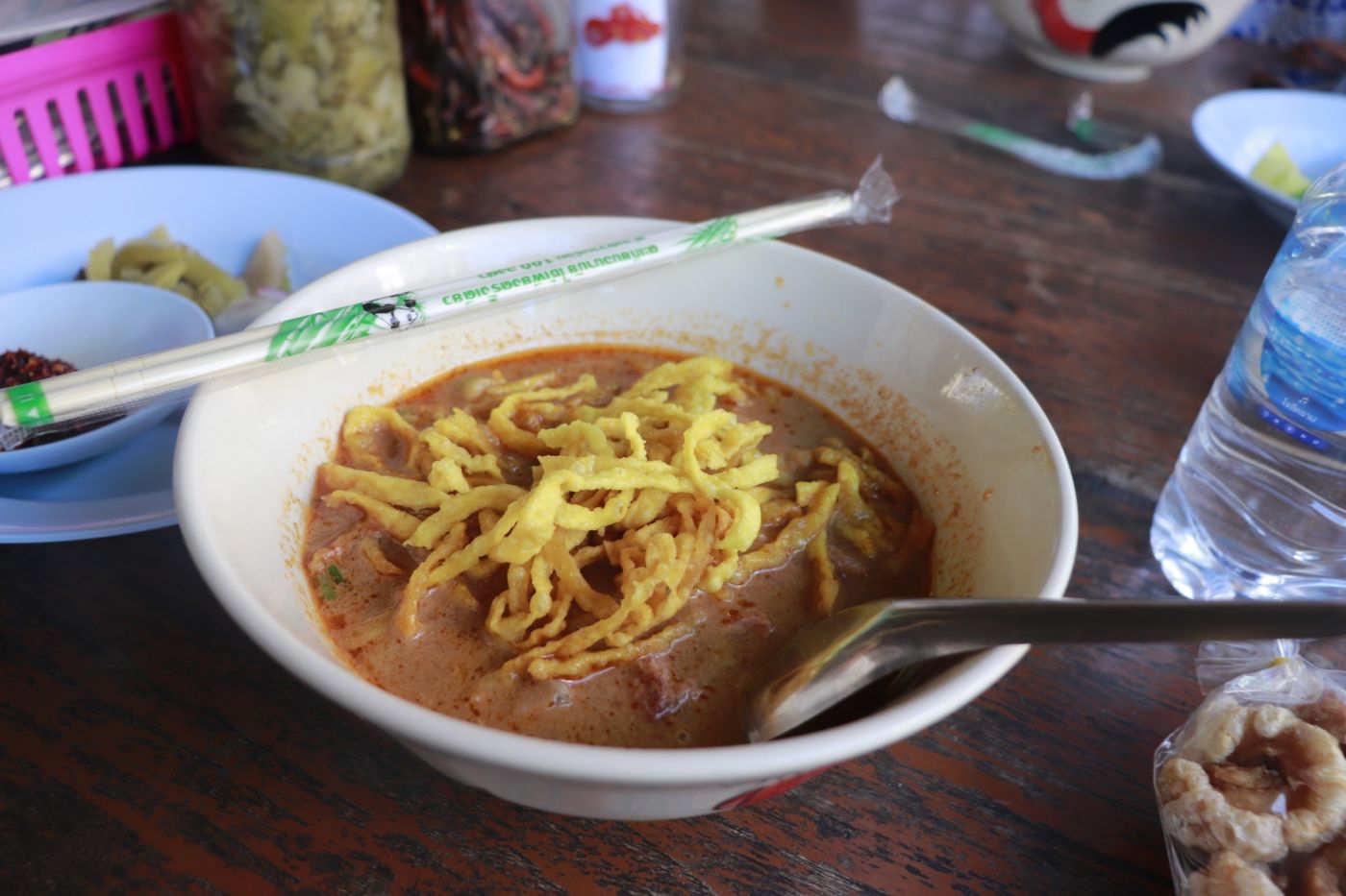 ถัดจากที่นี่ เราก็มาสู่ร้านข้าวซอยลับของชุมชน ร้าน "บ้านไม้คนเมือง" ต่อจากนี้มาตรฐานข้าวซอยของฉันจะสูงมาก เพราะรสชาติเข้มข้น กะทิและเครื่องแกงรสจัดหมูที่ถูกตุ๋นจนเนื้อเปื่อยการมากินข้าวซอยที่นี่ทำให้เรานึกถึงเวลาเราหิวแล้วหาก๋วยเตี๋ยวเรือแถวภาคกลางแต่คนเหนือเขากินข้าวซอยไง ร้านนี้ขอ Recommend อย่างหนัก