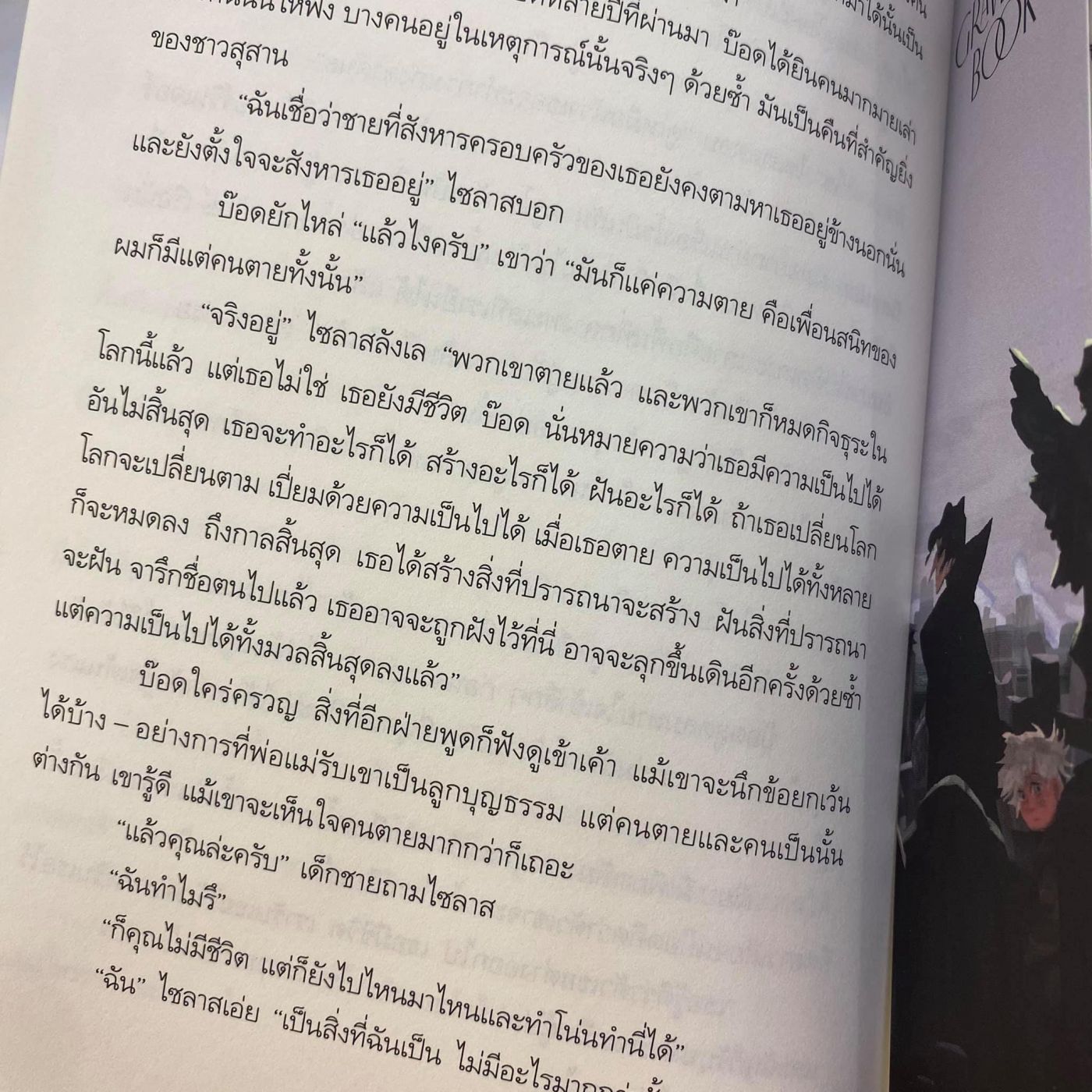 เป็นวรรณกรรมเยาวชนย่อยง่ายแบบเด็กอ่านได้ผู้ใหญ่อ่านดี มีข้อความน่าสนใจที่ทำให้รู้สึกว่าอยากมีชีวิตอยู่ต่อไปจังเลยน้า (อยู่ในอีกรูป) นีล เกแมนก็ยังคงเป็นคนที่ถ่ายทอดความเย็นยะเยือกที่น่ากลัวกว่าความตายได้อย่างน่าสนใจ เป็นคนที่เขียนเรื่องความตายให้ไม่น่ากลัวได้ แต่เรื่องที่น่ากลัวกว่าจะเป็นเรื่องอื่น (ฮา) อ่านเพลินมาก คุณไซลาสประเสริฐมาก หนูรักคุณไซลาสค่ะ