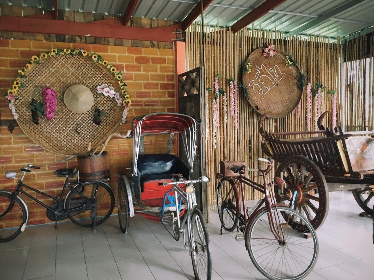 หลังจากรับประทานอาหารเช้ากันอย่างเอร็ดอร่อยและอิ่มหนำสำราญแล้วเราก็นั่งรถไปยังสถานที่ท่องเที่ยวแห่งแรกค่ะ นั่นก็คือ “บ้านวิถีไทย”สถานที่นี้มีการจัดแสดงอะไรหลายๆอย่างให้เราได้ดูกัน ไม่ว่าจะเป็นบ้านเรือนไทยซึ่งเปิดให้นักท่องเที่ยวเข้าไปเดินชมภายในได้เกวียนโบราณ ครกตำข้าว และอื่นๆอีกมากมาย นอกจากนี้ที่นี่ยังมีการดัดแปลงพื้นที่บางส่วนให้กลายเป็นโฮมสเตย์ถ้าใครสนใจที่จะเข้าพักก็สามารถติดต่อกับคุณเจ้าของได้เลยค่ะ