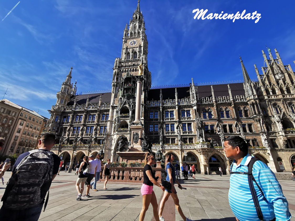 จัตุรัสมาเรียนพลัสซ์ตั้งอยู่ใจกลางเขตเมืองเก่าของมิวนิค มีอาคารศาลาว่าการใหม่ตั้งตระหง่าน ไม่ว่าจะถ่ายรูปมุมไหนของจัตุรัส หอคอยแหลมสูงนี้ก็จะเป็นจุดเด่นในภาพเสมอ อาคารศาลาว่าการใหม่นี้มีสถาปัตยกรรมที่ประณีตและงดงาม ไม่ต่างจากสถาปัตยกรรมของพระราชวังต่างๆเลยสักนิด เป็นอาคารแบบเก่าที่ตั้งอยู่ท่ามกลางความเป็นสมัยใหม่ได้อย่างลงตัว
