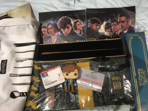 ฉันสัมภาษณ์นักแสดงหญิงคู่ แคทเทอรีน วอเตอรส์ตัน Katherine Waterston และ อลิสัน ซูดอล Alison Sudol เป็นรายสุดท้าย ก่อนจะกลับไปห้องเชคอินเพื่อรับของกำนัลสื่อ ตอนแรกก็ไม่ได้หวังไว้มาก แต่ผ้าพันคอของนิวท์ และไม้กายสิทธิ์ที่ได้ พร้อมเข็มหมุด "ฉันอยากเป็นพ่อมด" ("I want to be a Wizard.") ที่มาในถุงไม้กายสิทธิ์นั้น ตื่นตาตื่นใจเสียจริง
