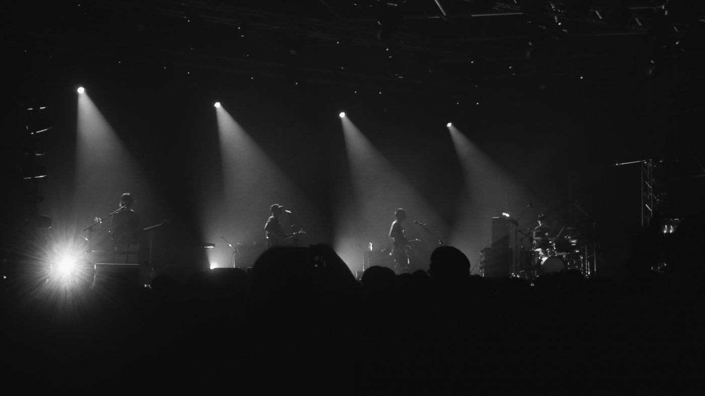 ตำแหน่ง เขาเรียงกันหน้ากระดานเลยค่ะ ไม่ใช่ให้มือกลองอยู่ด้านหลัง ทำให้เห็นทุกคนในมุมที่ดี แสงไฟสปอตไลต์ก็ส่องลงมาทุกคน เราก็เลยได้ภาพมาค่อนข้างพอใจเลยค่ะ ดีมากมาก T___T