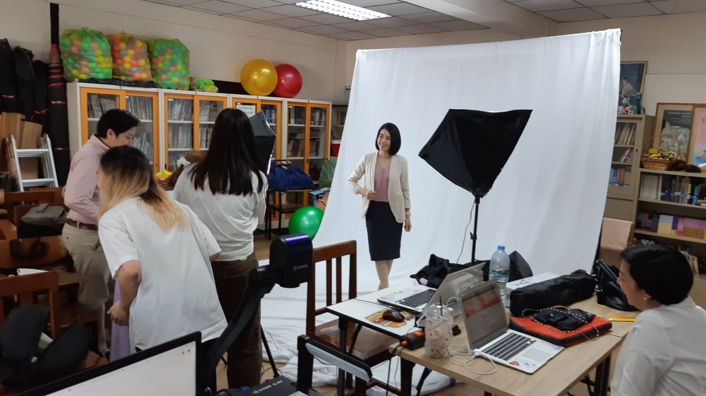 ซึ่งการที่จะเอารูปเก่าลงเว็บที่เราทำใหม่มันก็กระไรอยู่ บวกกับว่าเรามีสตูดิโอถ่ายรูปงานทีสิสรุ่นพี่อยู่แล้ว การจะถ่ายรูปครูใหม่ทำไมจะทำไม่ได้!