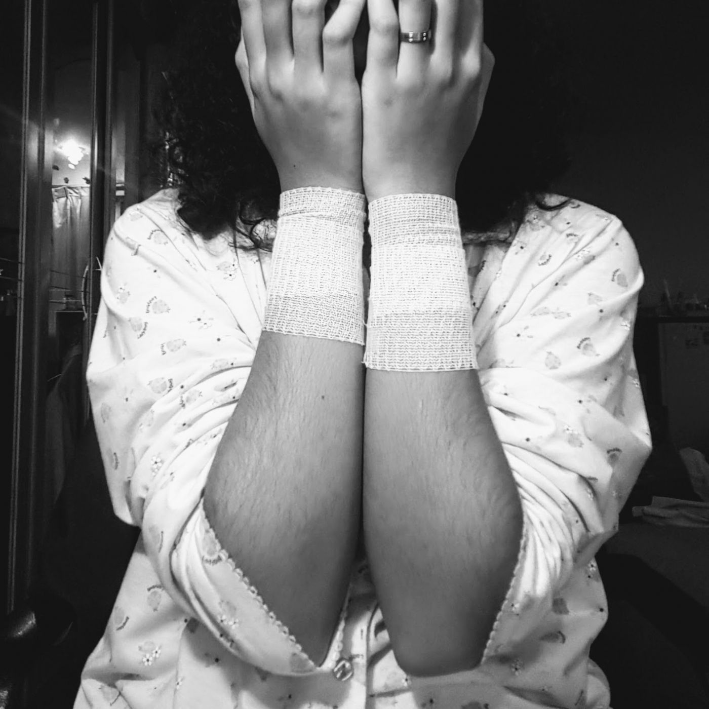 เราควานหาใบมีดโกนที่เก็บไว้ในหมอนแต่ไม่เจอ อาจจะเป็นโชคดีที่ไม่เจอ เราลุกไปหยิบมีดปอกผลไม้ในห้องน้ำ กรีดแขนตัวเอง แต่มันก็ทื่อซะจนทำให้แขนเป็นรอยลึกแต่ไม่มีเลือดแค่นั้น