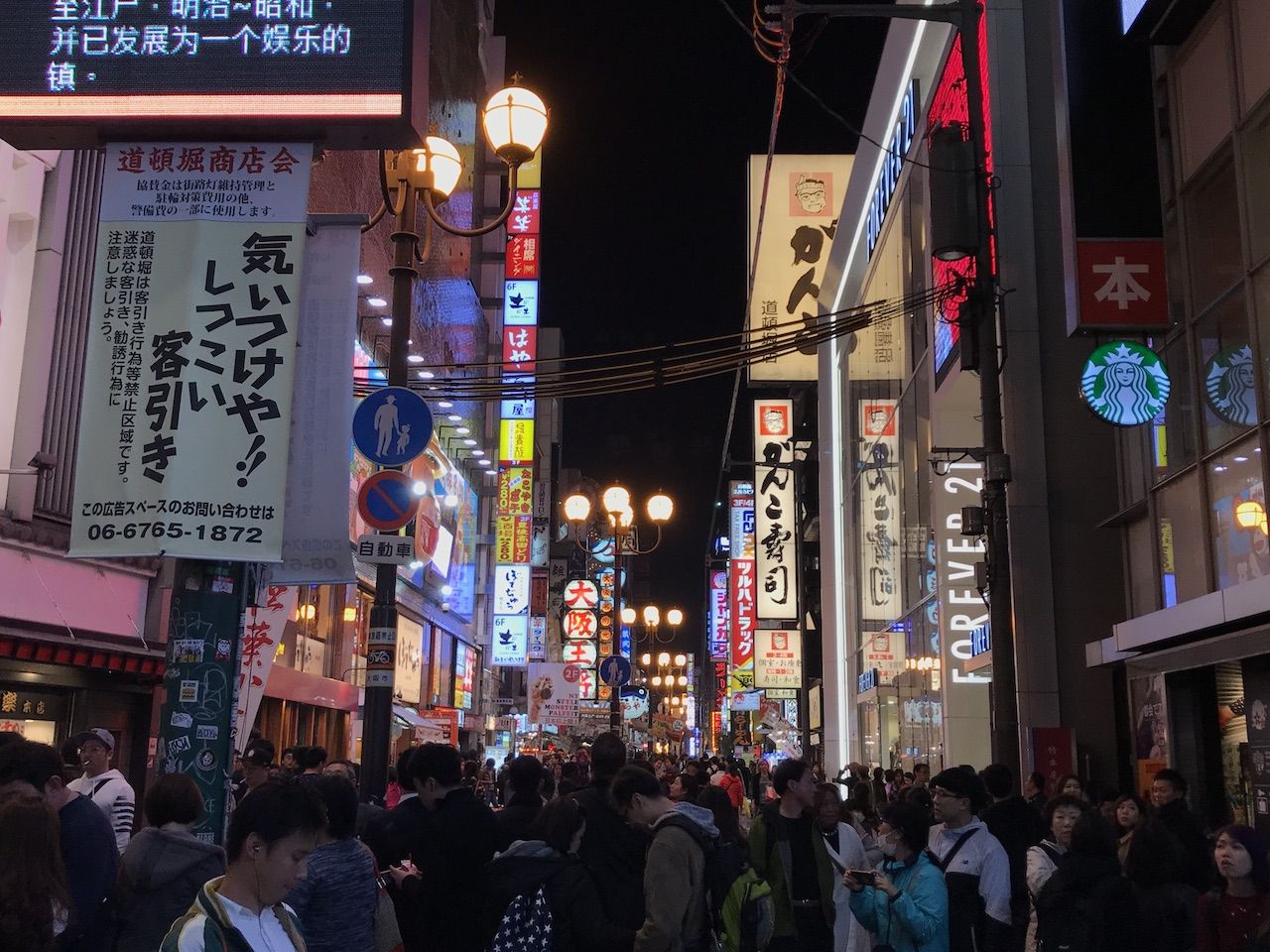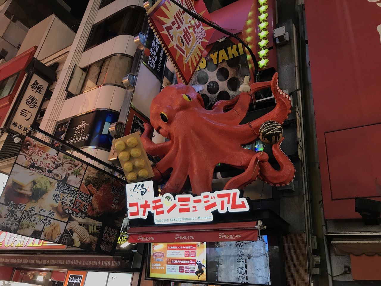 จากนั้นเราก็ข้ามไปที่ ชินไชบาชิ (Shisaibashi) ย่านช้อปปิ้งที่อยู่ไม่ไกลจากกันนัก ก่อนที่จะเดินมาจนถึง โดทงบุริ (Dotonburi) ย่านช้อปปิ้งที่ใหญ่บึ้มใจกลางโอซาก้า เราจะมาตามหาของอร่อยที่นี่กัน!