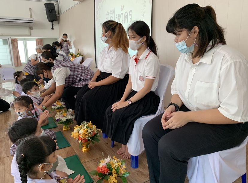 อาทิตย์สุดท้ายกับการฝึกงานของฉันและเพื่อนอีกสองคนนั้นตรงกับพิธีวันไหว้ครูพอดี ครูและเด็ก ๆ ใช้เวลาช่วงเช้าของวันที่ 27 สิงหาคม หมดไปกับพิธีการไหว้ครู เด็กหลาย ๆ คนดูยังคงไม่เข้าใจว่าตนกำลังมาทำอะไรที่หอใหญ่แห่งนี้ แต่หลาย ๆ คนก็ตั้งใจดี นั่งนิ่งตามที่คุณครูบอก แต่ก็มีเด็กอีกหลายคนที่ขยับยุกยิกนั่งนิ่งไม่ได้ แต่จะว่าอะไรเด็กได้ ขนาดเราโตกว่าตั้งเยอะยังเบื่อการต้องนั่งรอนิ่ง ๆ เลย ยิ่งต้องนั่งพับเพียบอีก เมื่อยขาเป็นบ้า