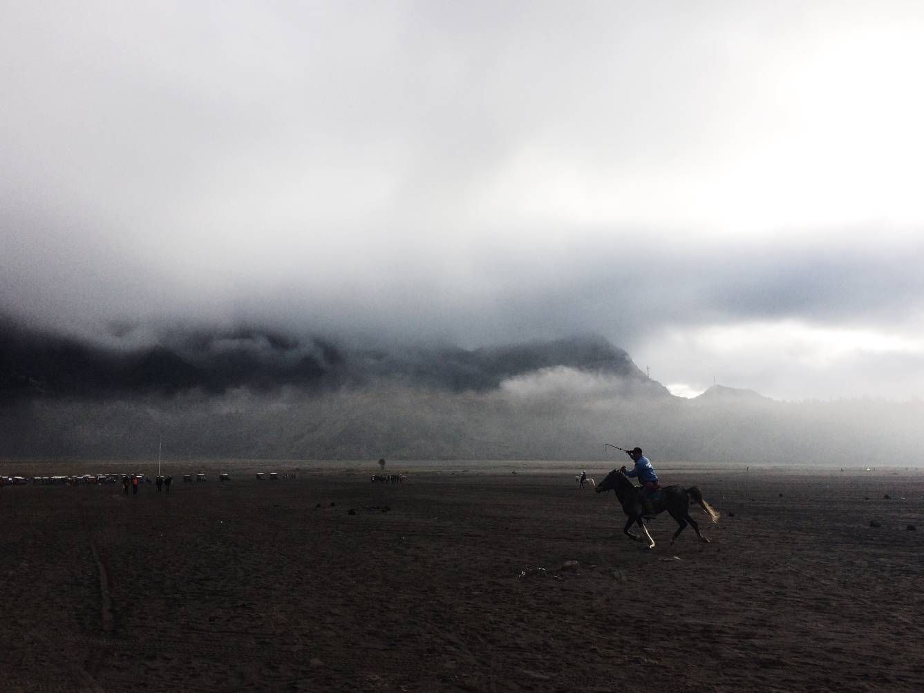 จริงๆผมก็อยากให้มันเป็นโมเม้นแบบนั้นนะแต่ความเป็นจริงก็คือ หลังจากลงจากรถผมก็อ้วกยับไม่มีบทสนทนาใดๆ นะปล่อยผมยืนซึ้งใจกับผ้าพันคอและถุงมืออยู่พักนึง ฟิลก็ต้อนพวกเราให้ขึ้นไปนั่งบนรถจิ๊ปที่เตรียมไว้ให้แล้วก็ขับๆ ต่อไปจนถึงตีนภูเขาไฟโบรโมเพื่อรอดูพระอาทิตย์ขึ้น นี่แหละความเป็นจริง ใจร้ายยยยยยยย